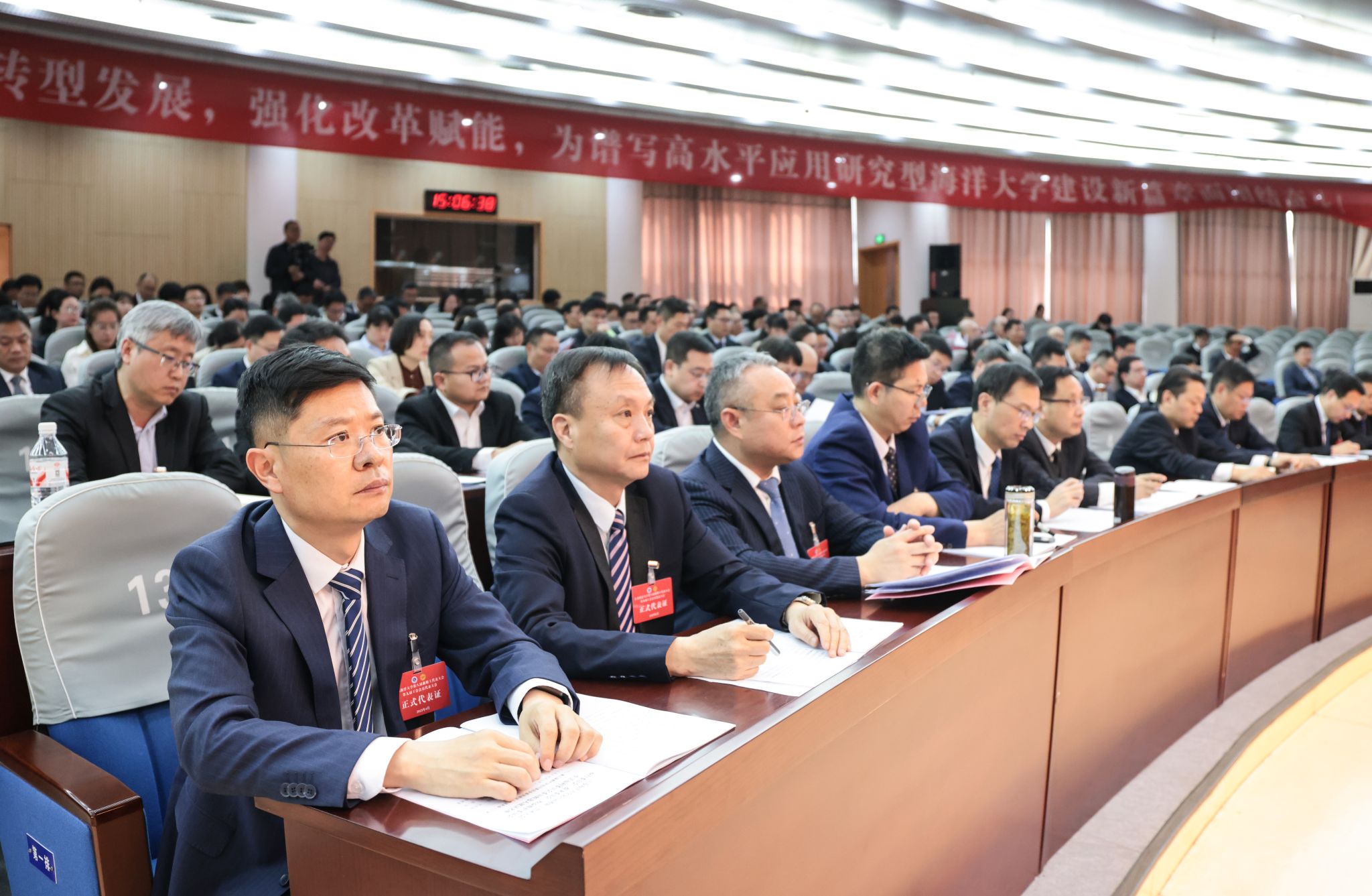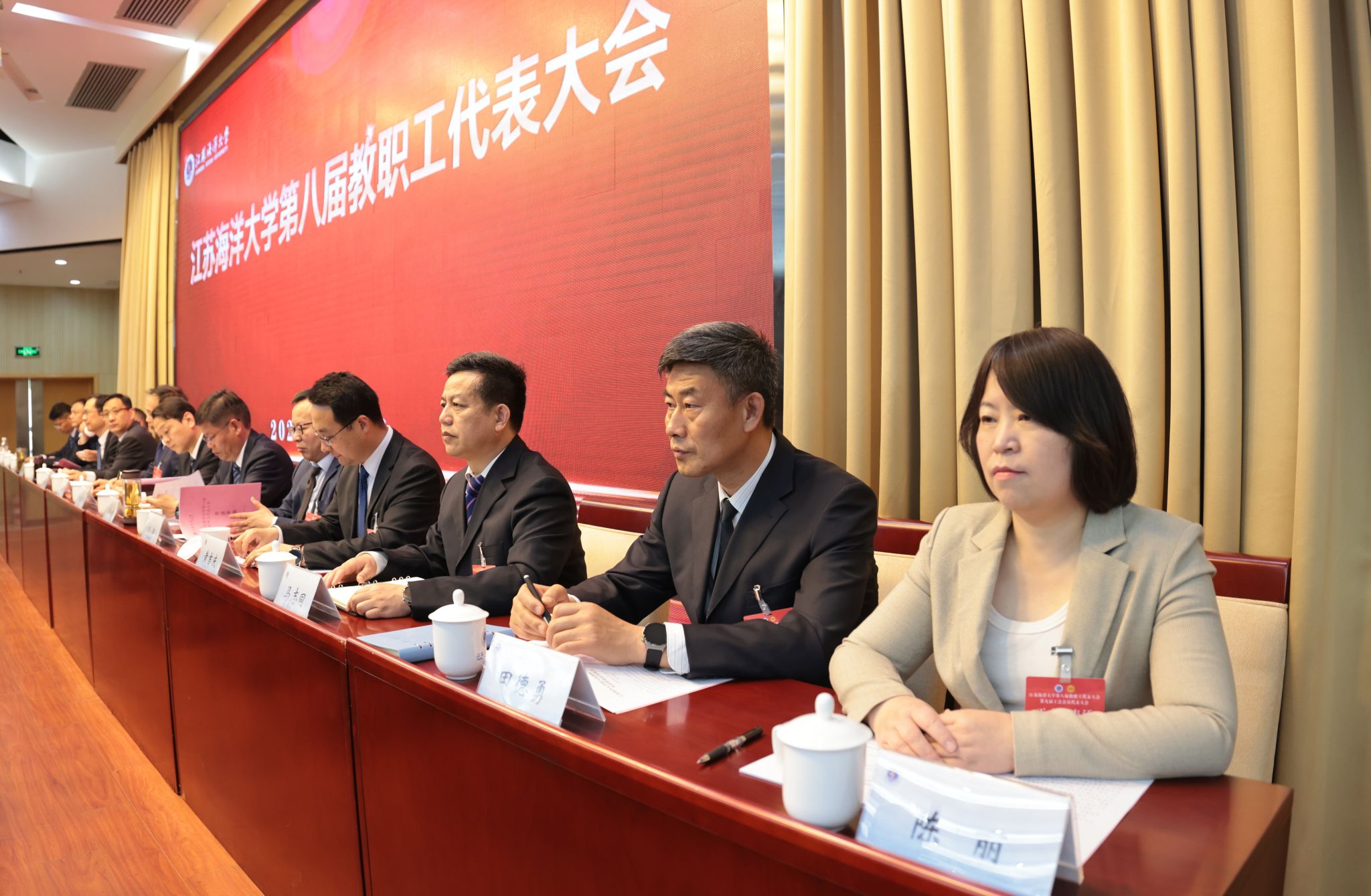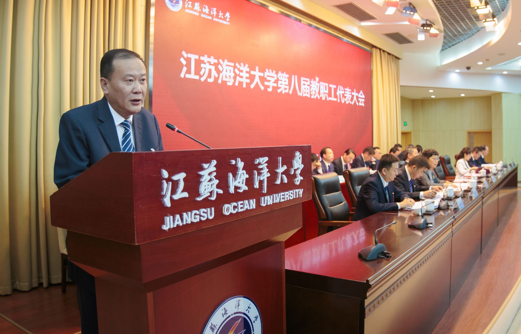 大会号召,全体教职工要坚持以习近平新时代中国特色社会主义思想为指导,全面贯彻落实党的二十大和二十届二中、三中全会精神,认真落实江苏海洋大学第一次党代会部署安排,勇担重任,务实笃行,决战决胜2025年目标任务,不断开创学校事业高质量发展全校师生更加幸福的新局面,奋力推动高水平应用研究型海洋大学建设实现新跨越。