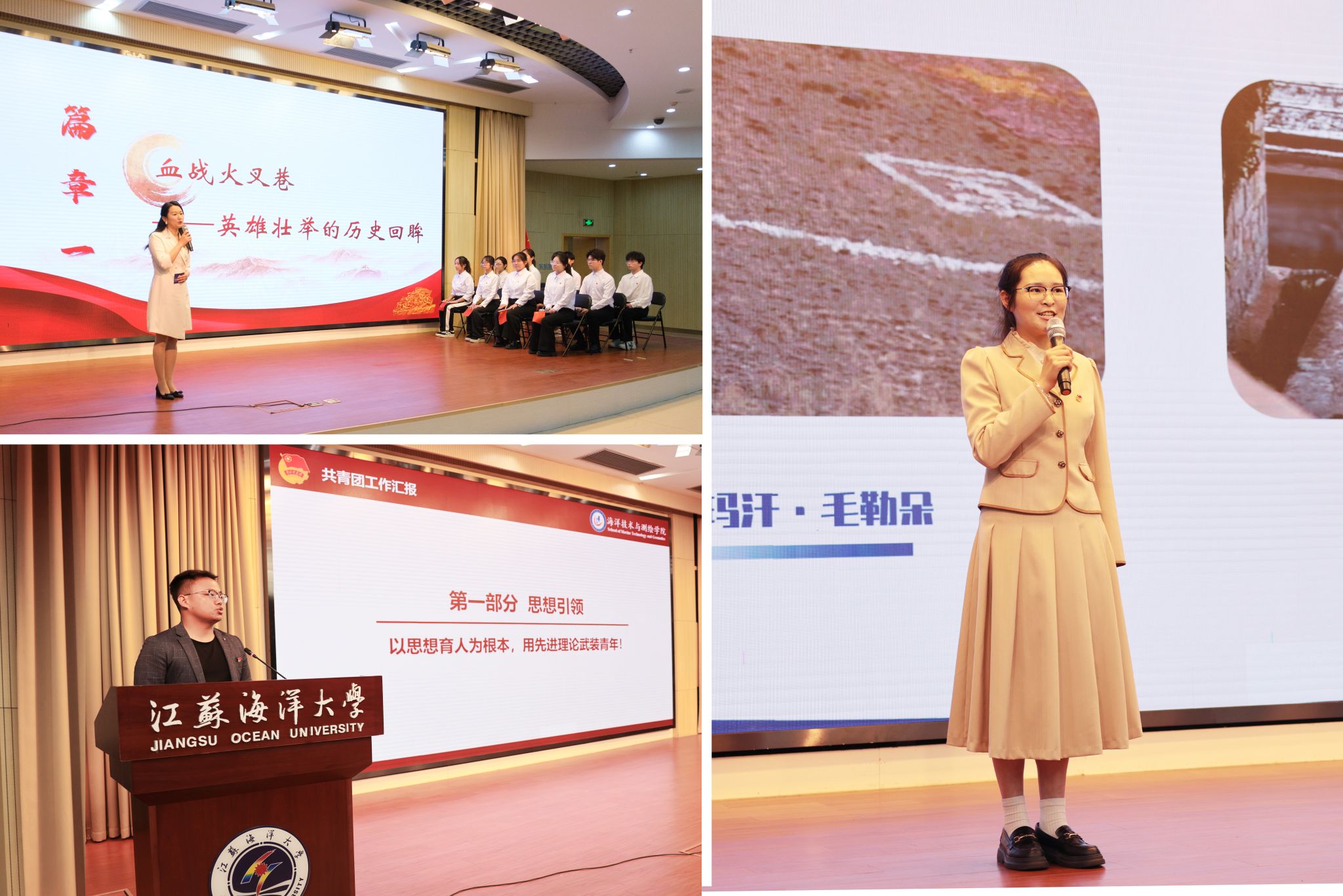 校五四红旗团委代表、共青团先进工作者、海洋技术与测绘学院团委纪成作“青力青为担使命 笃行实干谱新章”主题汇报,从思想引领、组织建设、服务青年、特色工作四个方面全方面展现了海洋技术与测绘学院团委在共青团工作中的积极探索与丰硕成果。