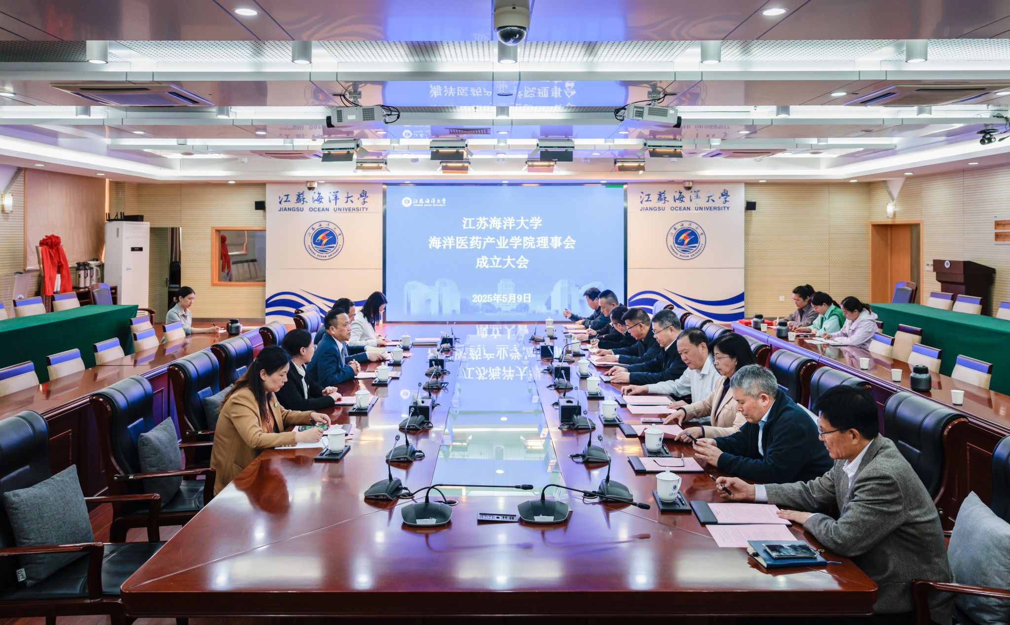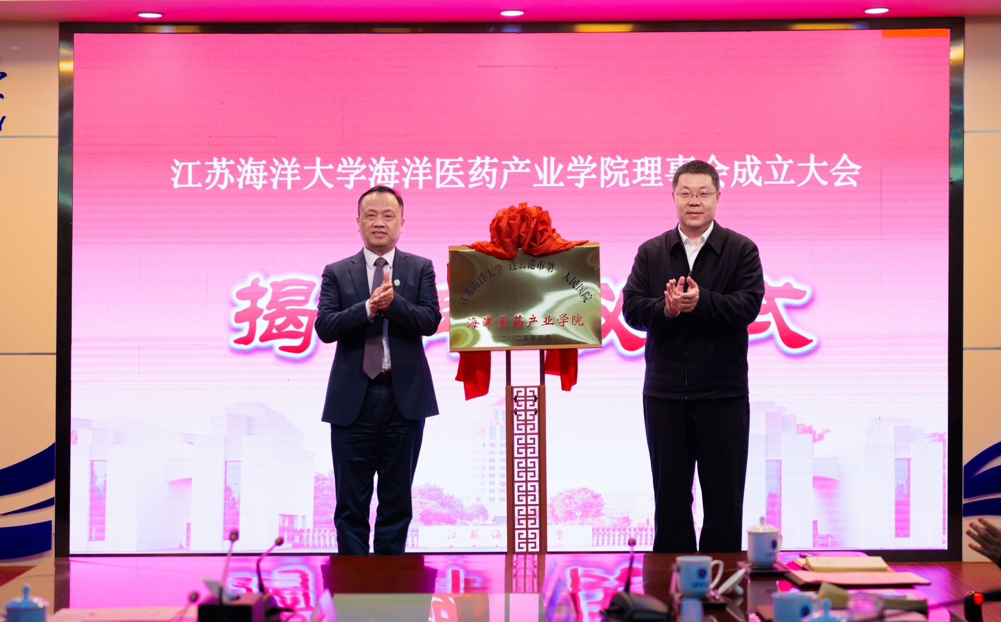 5月9日下午,我校海洋医药产业学院理事会成立大会在会议中心东海厅举行。校党委书记许峰、校长汤建,连云港市第一人民医院党委书记李爱民,院长施辉,副院长胡蓉出席会议。会议由副校长郑利军主持。