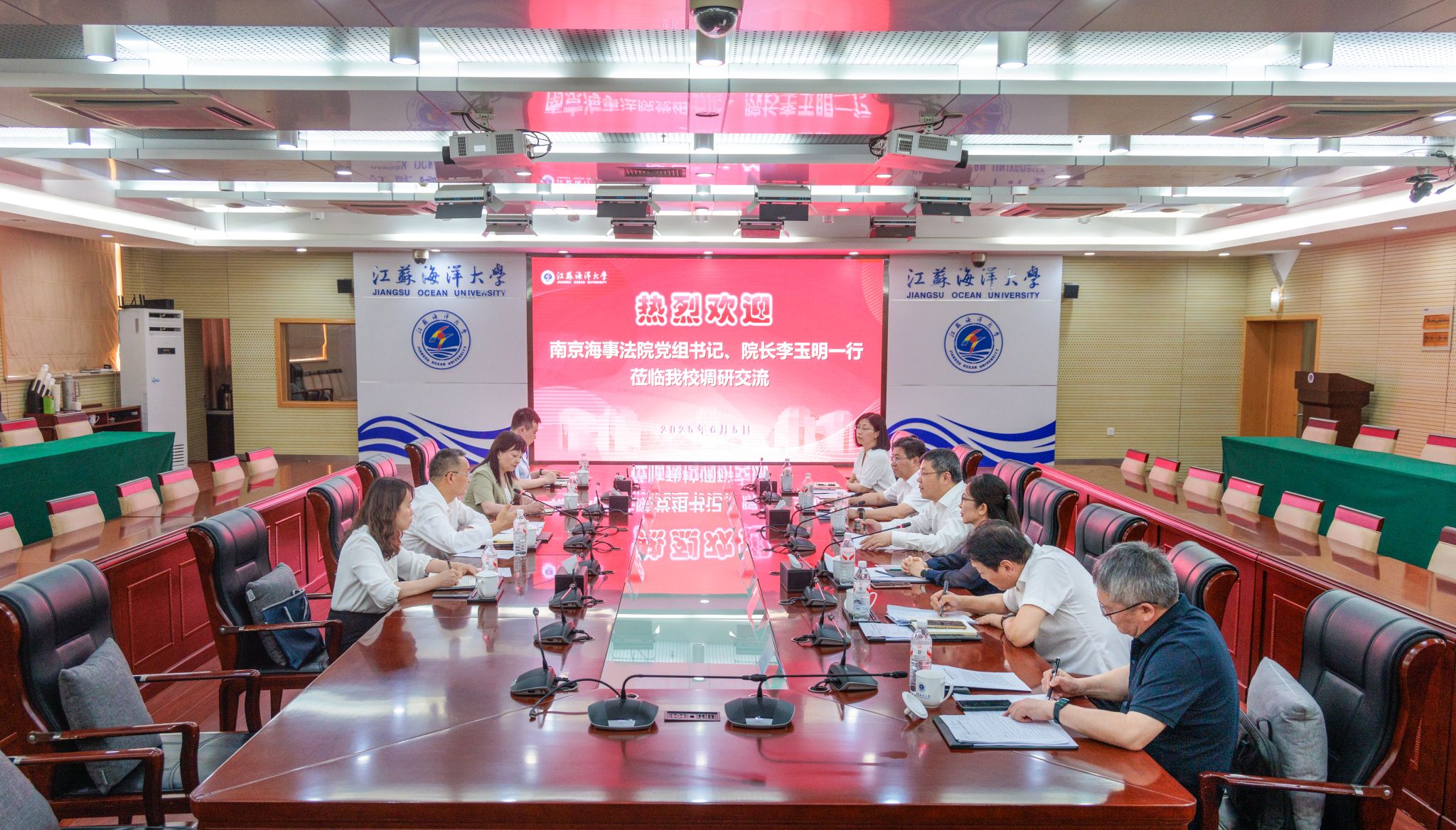 6月5日下午,南京海事法院党组书记、院长李玉明一行来我校调研交流。校党委书记许峰,副校长金芙蓉、马廷淮,党委常委毛宝海出席座谈会。