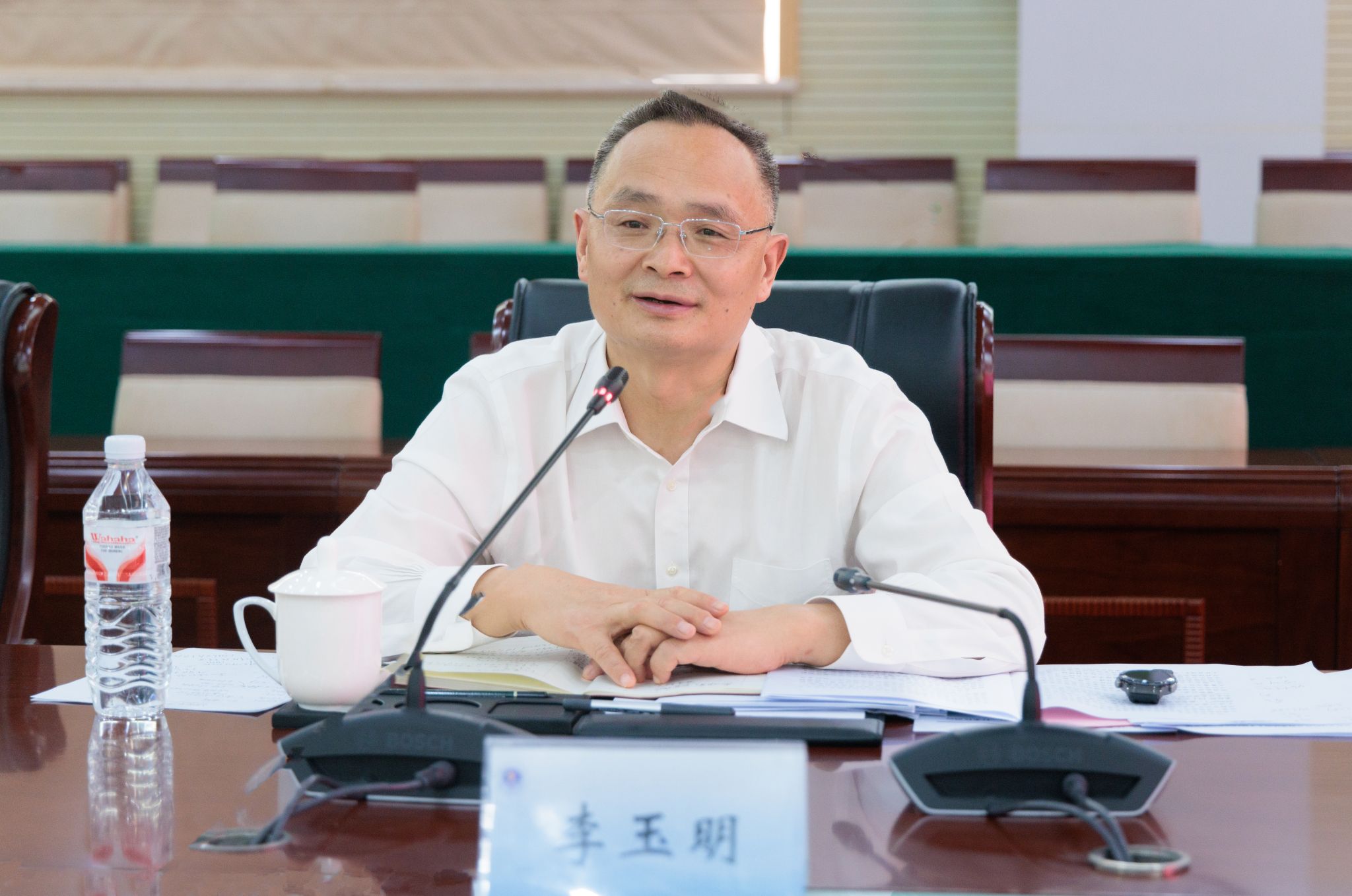 李玉明简要介绍了南京海事法院的基本情况,在维护海洋权益、服务现代海洋经济发展等方面发挥的积极作用。他表示,南京海事法院与江苏海洋大学长期以来一直保持着紧密的合作关系,并建立了深厚的友谊。江苏海洋大学在人才培养、科学研究以及社会服务等方面取得了丰硕成果,为南京海事法院在专家咨询、学术交流等方面提供了有力支持。他期待双方能够进一步深化合作,实现优势互补,共同打造校院合作的新典范,为海洋经济发展和海洋环境保护提供更全面的服务。
