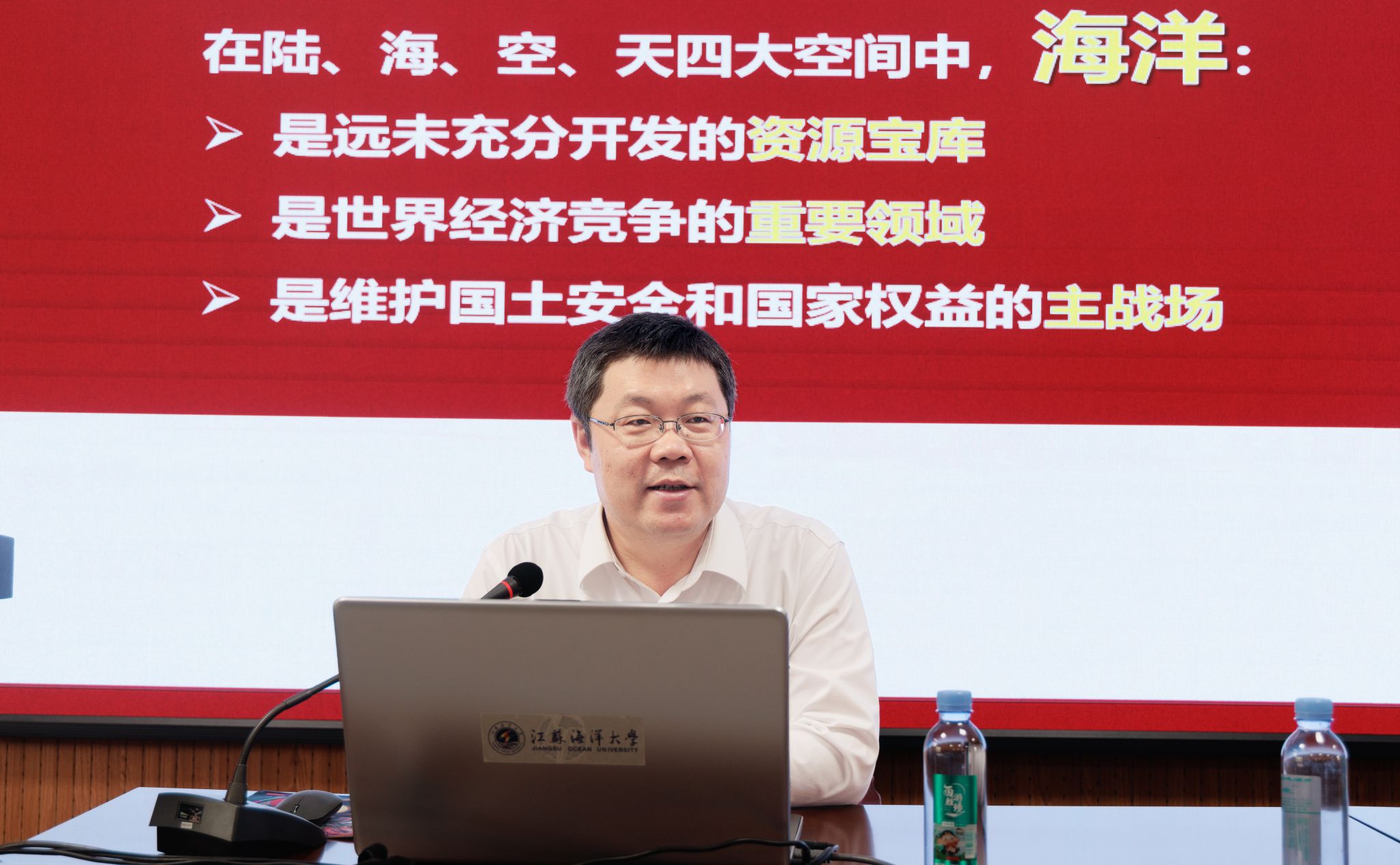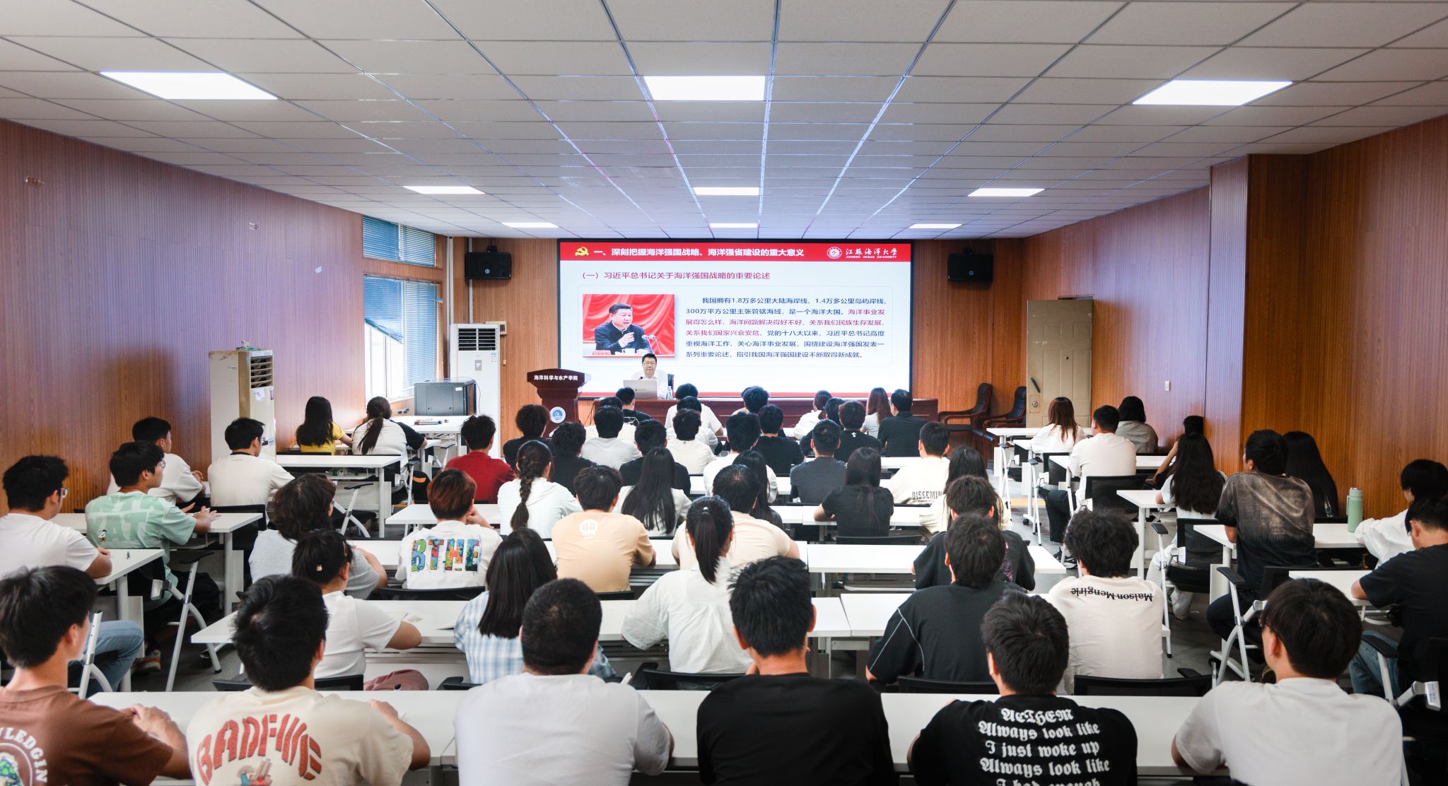 许峰紧扣习近平总书记关于海洋强国战略的重要论述,解读了海洋强国战略、海洋强省建设的时代意义,深入分析了学校的发展机遇,引导学子深刻认识建设海洋强国的历史必然性,自觉肩负起时代赋予的使命重任。