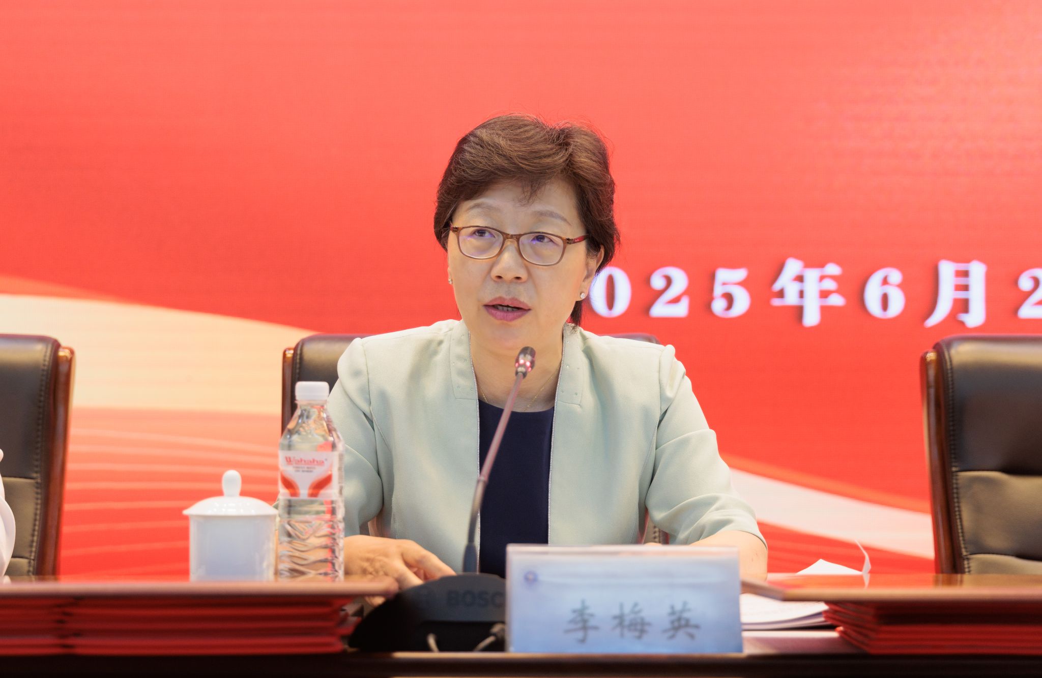 校党委常委、党委副书记李梅英作题为“强化使命勇担当 凝心聚力谱新篇 以高质量党建引领学校事业高质量发展”的工作报告。她从“坚持学用结合,推进学习教育见行见效”“坚持固本培元,着力推进党建工作质量”“坚持守正创新,切实增强思政工作实效”“坚持标本兼治,纵深拓展党风廉政建设”“坚持系统治理,全力构建平安和谐校园”“坚持实践导向,加强理论研究成果转化”等六个方面,全面总结了两年来学校党的建设和思想政治工作取得的成绩。