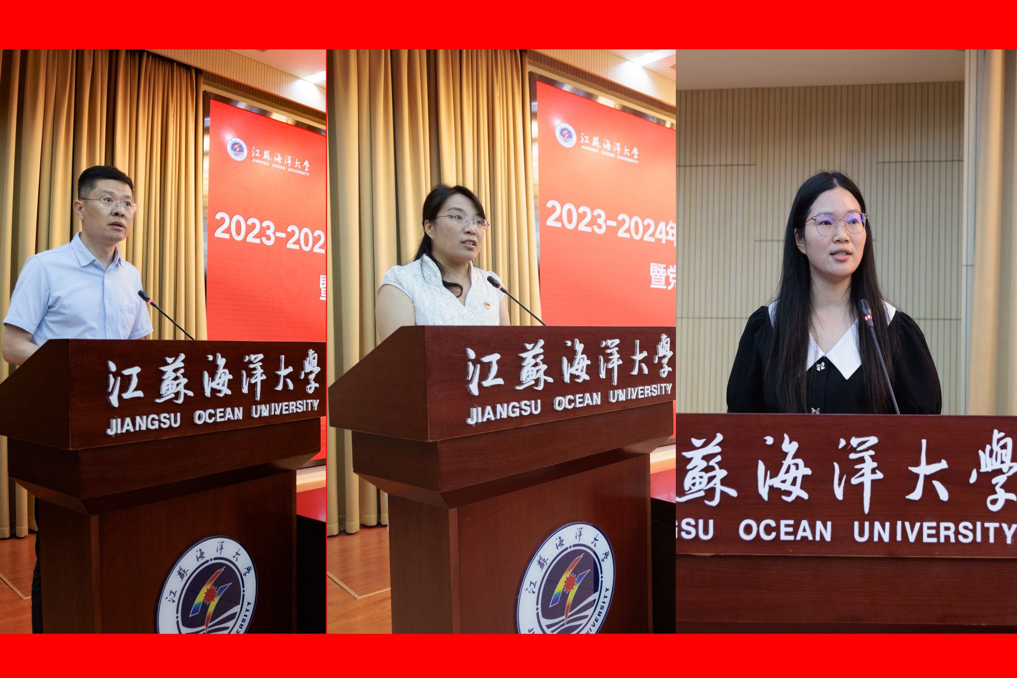会上,校党委常委、副校长金芙蓉、申欣、徐军田分别宣读了2023-2024年度江苏海洋大学文明单位、宣传思想文化工作创新成果、党建与思想政治教育优秀研究成果以及江苏省2024年普通本科高校课程思政典型案例评选结果。校领导为获奖集体和个人颁奖。