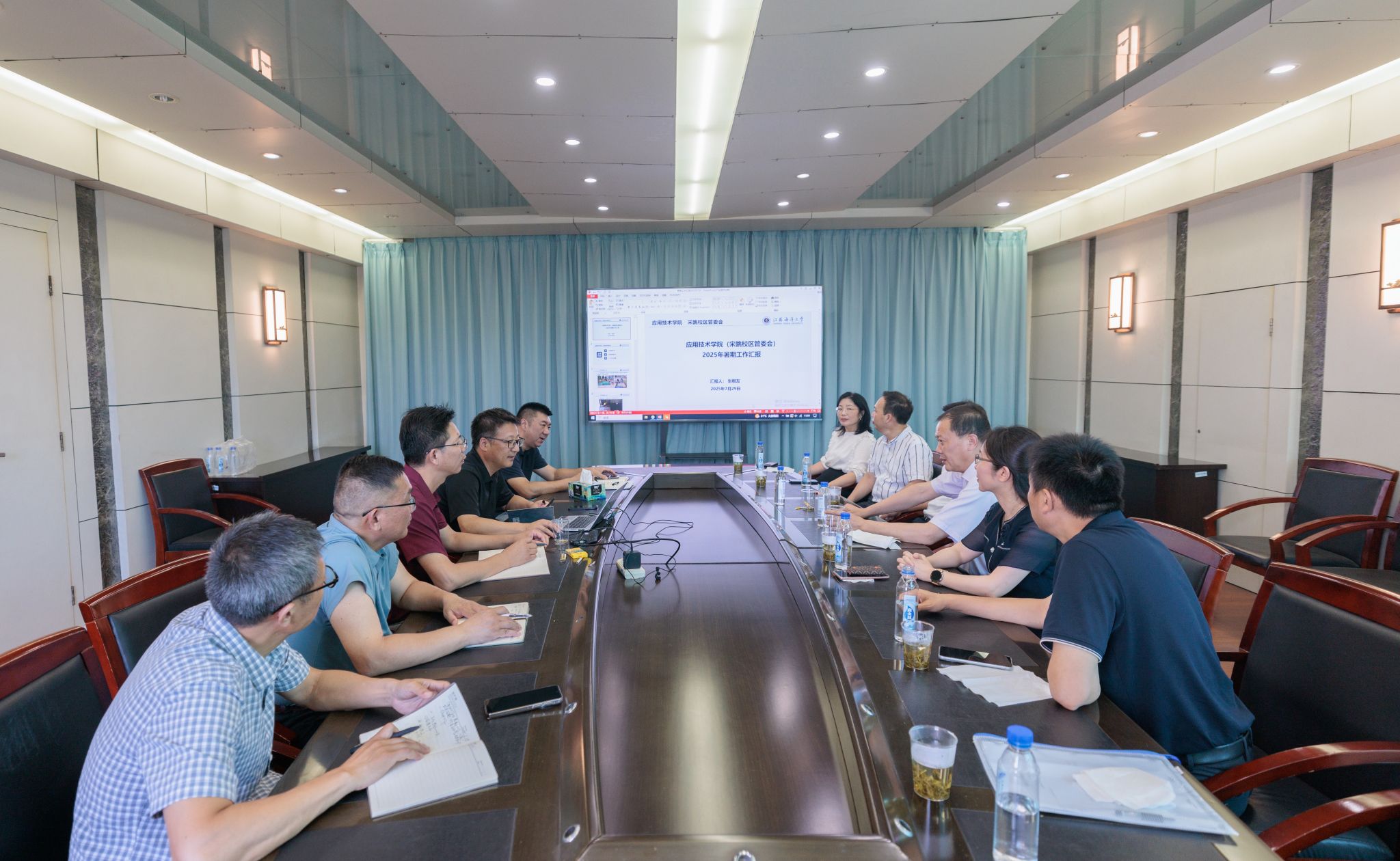在后勤与基建管理处、保卫处、招投标办公室、国有资产与实验室管理处、应用技术学院,汤建认真听取了各单位部门负责人对暑期学生公寓改造、水电管网维护、实验室建设项目推进、生活服务保障、运动场地修缮等工作情况的汇报。校领导一行还深入各校区重点改造维修项目现场,详细了解项目进展,对下一步工作提出指导意见。