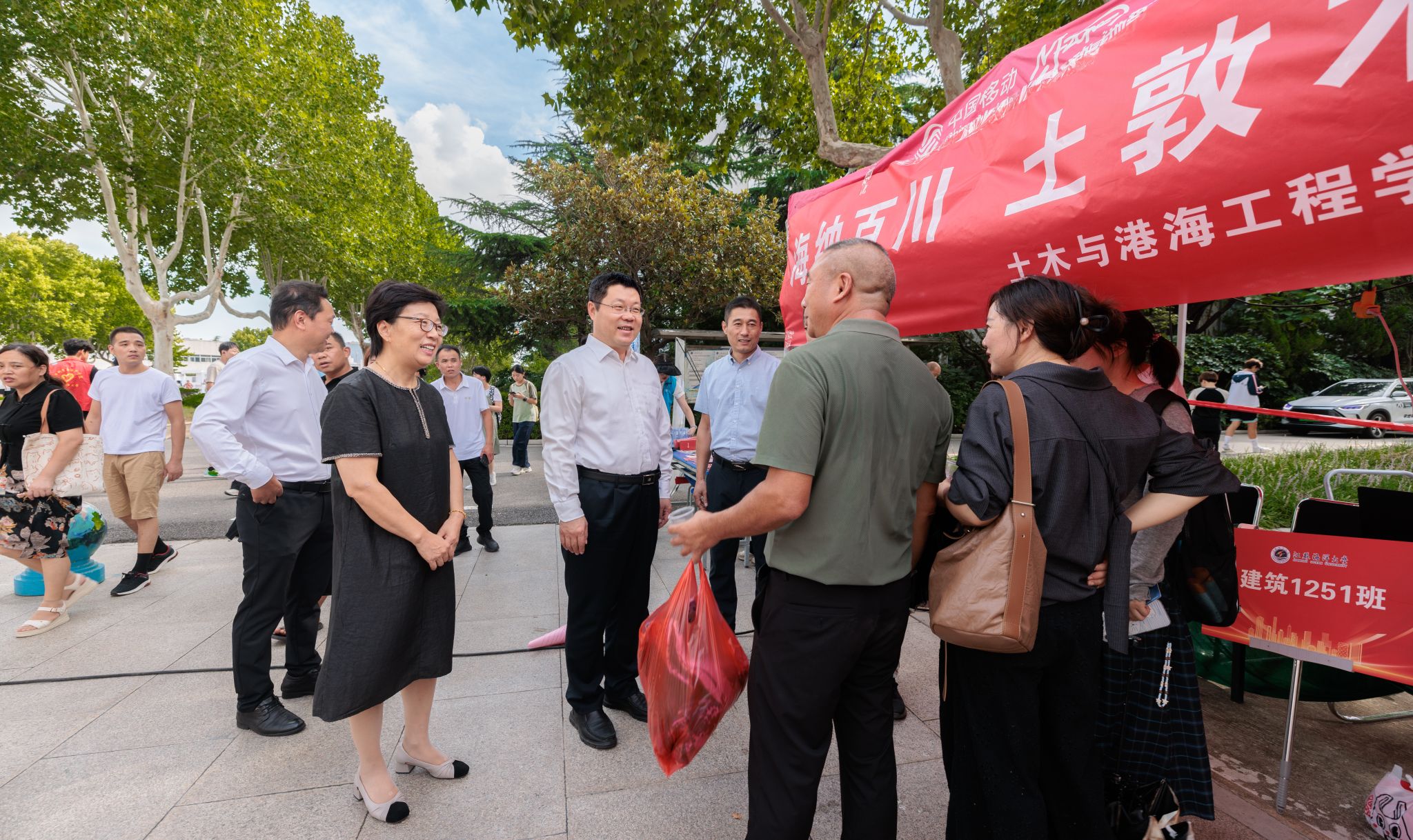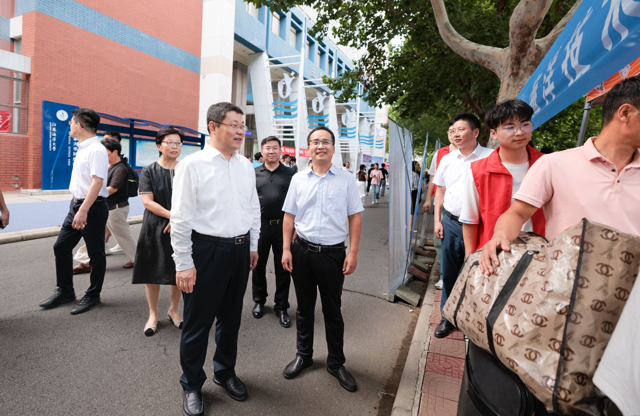 “大家辛苦了!”在报到现场,许峰深入了解新生报到流程,仔细询问迎新服务保障情况,叮嘱工作人员要用细致周到的服务让新生们感受到学校的关怀与温暖。其间,马廷淮代表学校走进新生宿舍看望了学生代表。