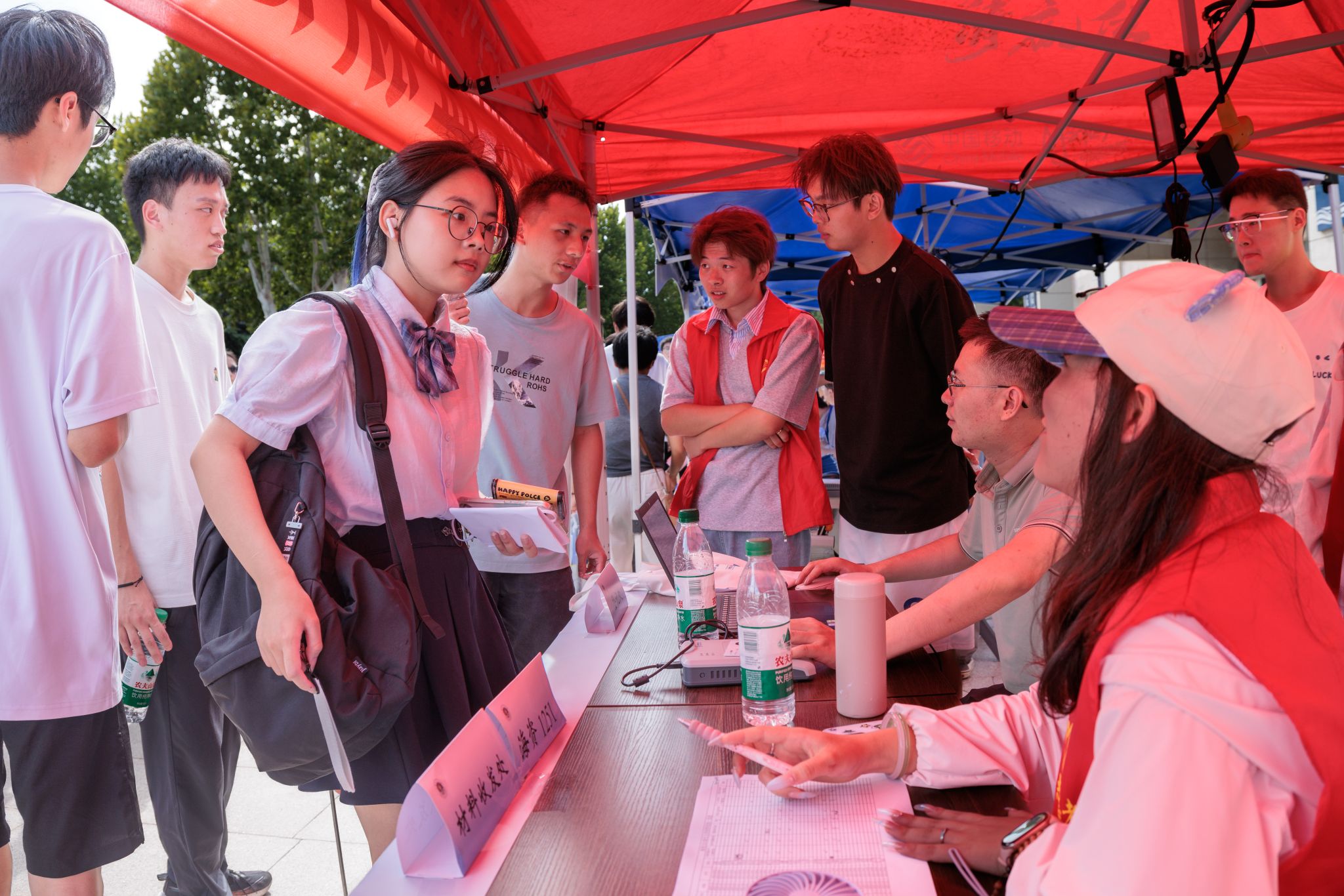 绿茵大道上,红色帐篷与海大蓝迎新牌相映成趣,师生志愿者们早早沿路守候,帮助新生和家长搬运行李、指引道路、办理手续,把新生稳稳地接进校园。入学 “绿色通道” 温情开启,通过精准帮扶为家庭经济困难新生扫清入学障碍,全力护航他们安心入学。搭建“暖心服务站”,通过“便利贴留言”“集印章互动”等形式拉近与新生的距离。“我们希望通过这些活动帮助他们缓解初入校园的紧张,更快找到集体归属感。”学生志愿者、行管1231班王佳莉说道。