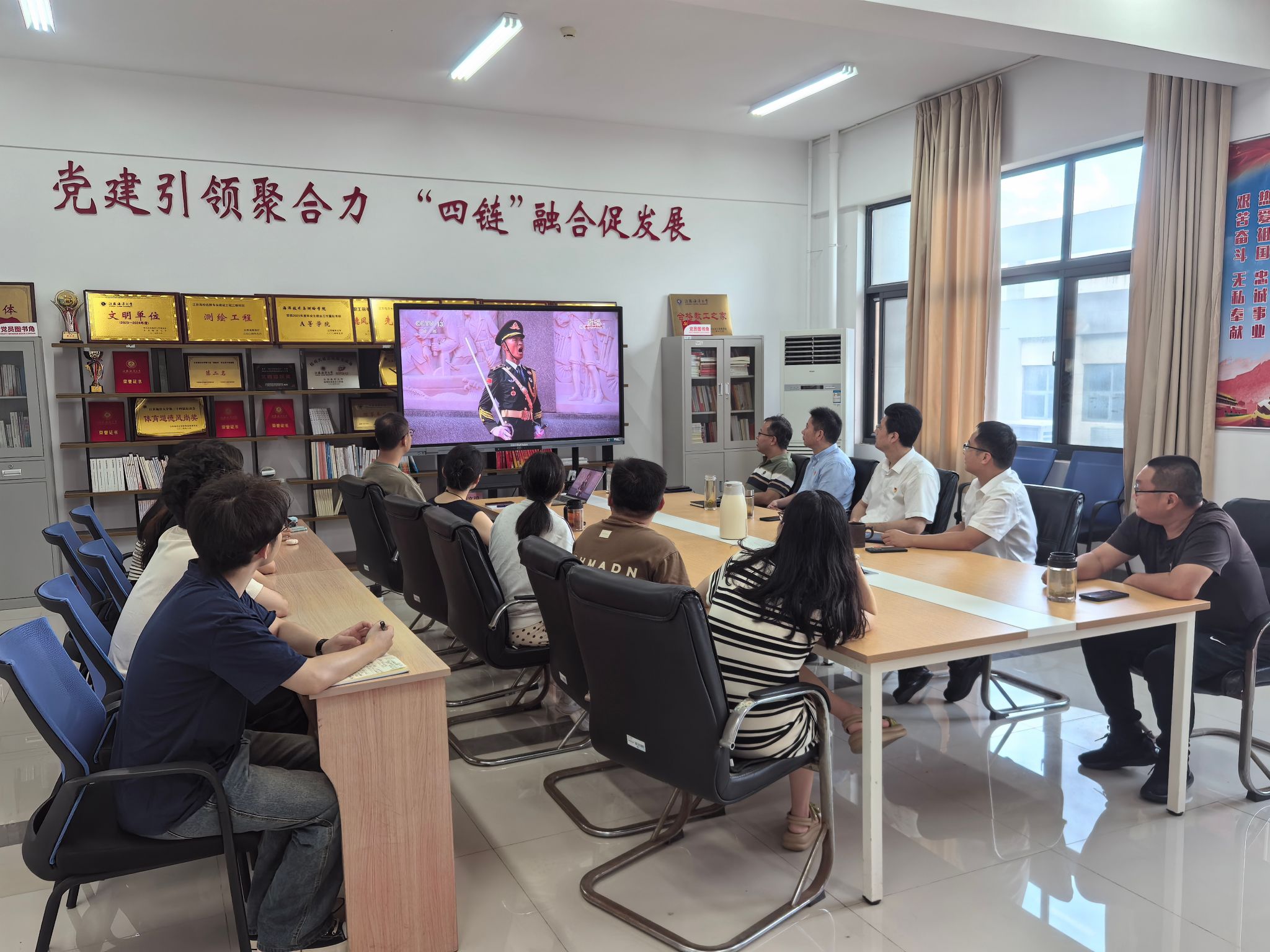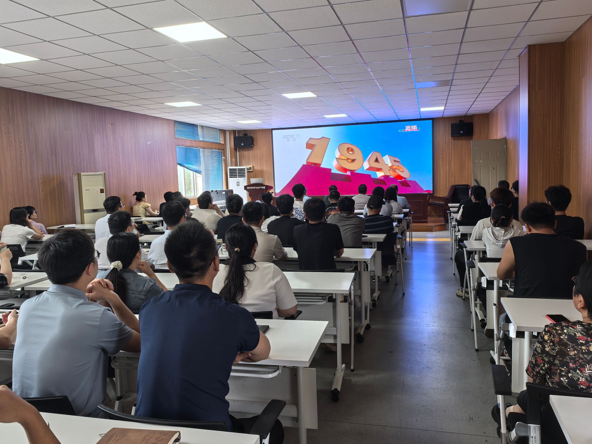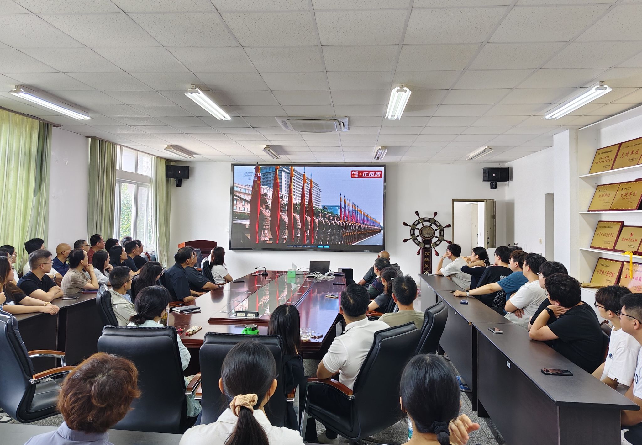 9月3日上午9点,纪念中国人民抗日战争暨世界反法西斯战争胜利80周年大会在北京隆重举行。天安门广场举行盛大阅兵仪式。中共中央总书记、国家主席、中央军委主席习近平发表重要讲话并检阅受阅部队。我校各级党组织、各单位积极组织师生收看这一盛况,通过集中观看与分散学习相结合的方式,共同铭记历史、缅怀先烈、珍爱和平、开创未来。