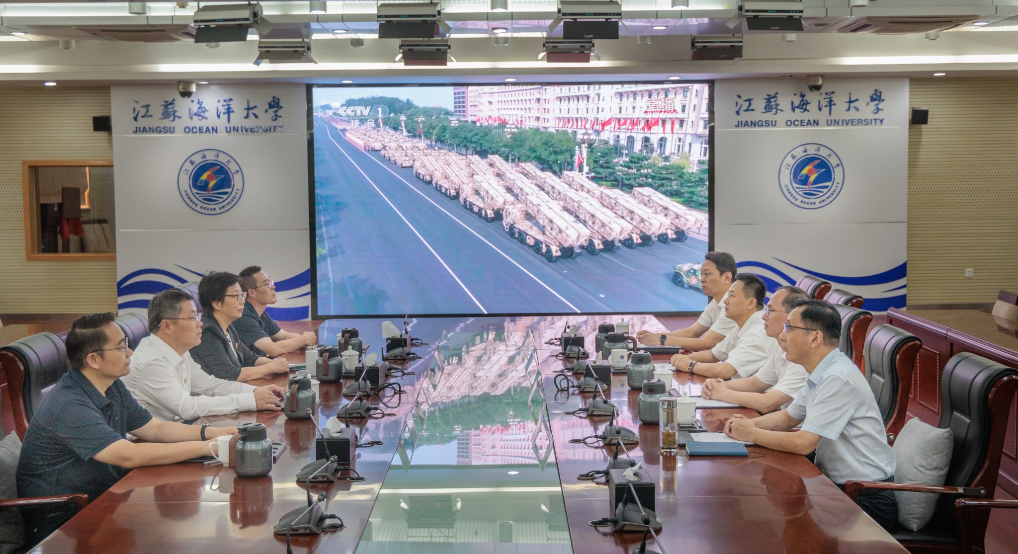 校党委书记许峰表示,习近平总书记的重要讲话高瞻远瞩、引领时代,振奋人心、催人奋进,深刻阐释了中国人民铭记历史、缅怀先烈、爱好和平、开创未来的共同心愿,为以中国式现代化全面推进强国建设、民族复兴伟业指明了前进方向、注入了强大动力。盛大的阅兵式,彰显了祖国的强大和国防建设取得的伟大成就,令人震撼、无比自豪!对历史最好的纪念,就是开创新的历史。我们要传承和弘扬伟大抗战精神,牢牢把握正确方向,牢记“为党育人、为国育才”的重要使命,落实好立德树人根本任务,锚定“向海图强”的目标,将“家国情怀、海洋意识、创新精神”融入人才培养全过程,源源不断培养德智体美劳全面发展的社会主义建设者和接班人。在服务高水平科技自立自强中坚定信心、鼓足干劲、勇挑大梁,在服务海洋强国建设中成就高水平应用研究型海洋大学的新高度。
