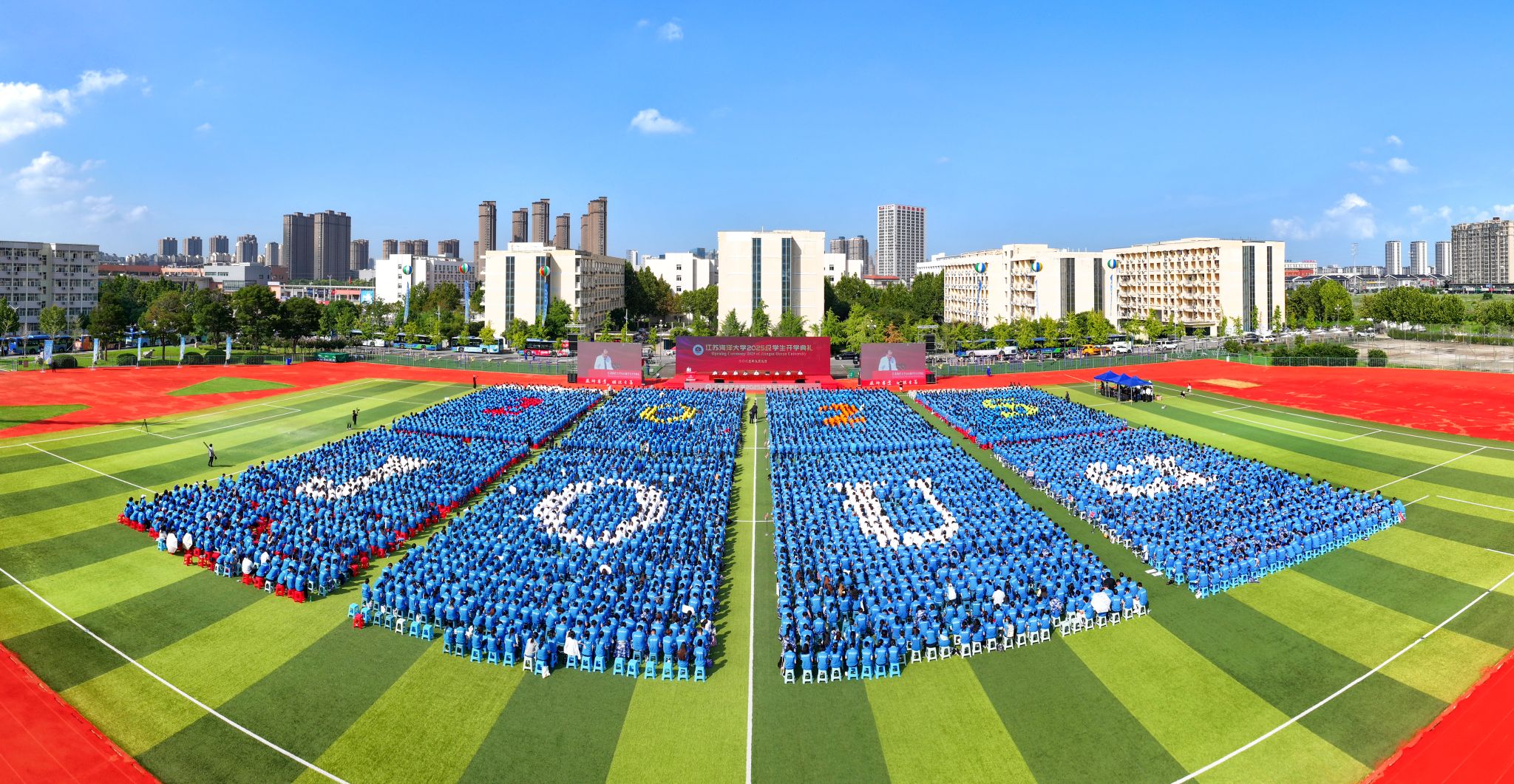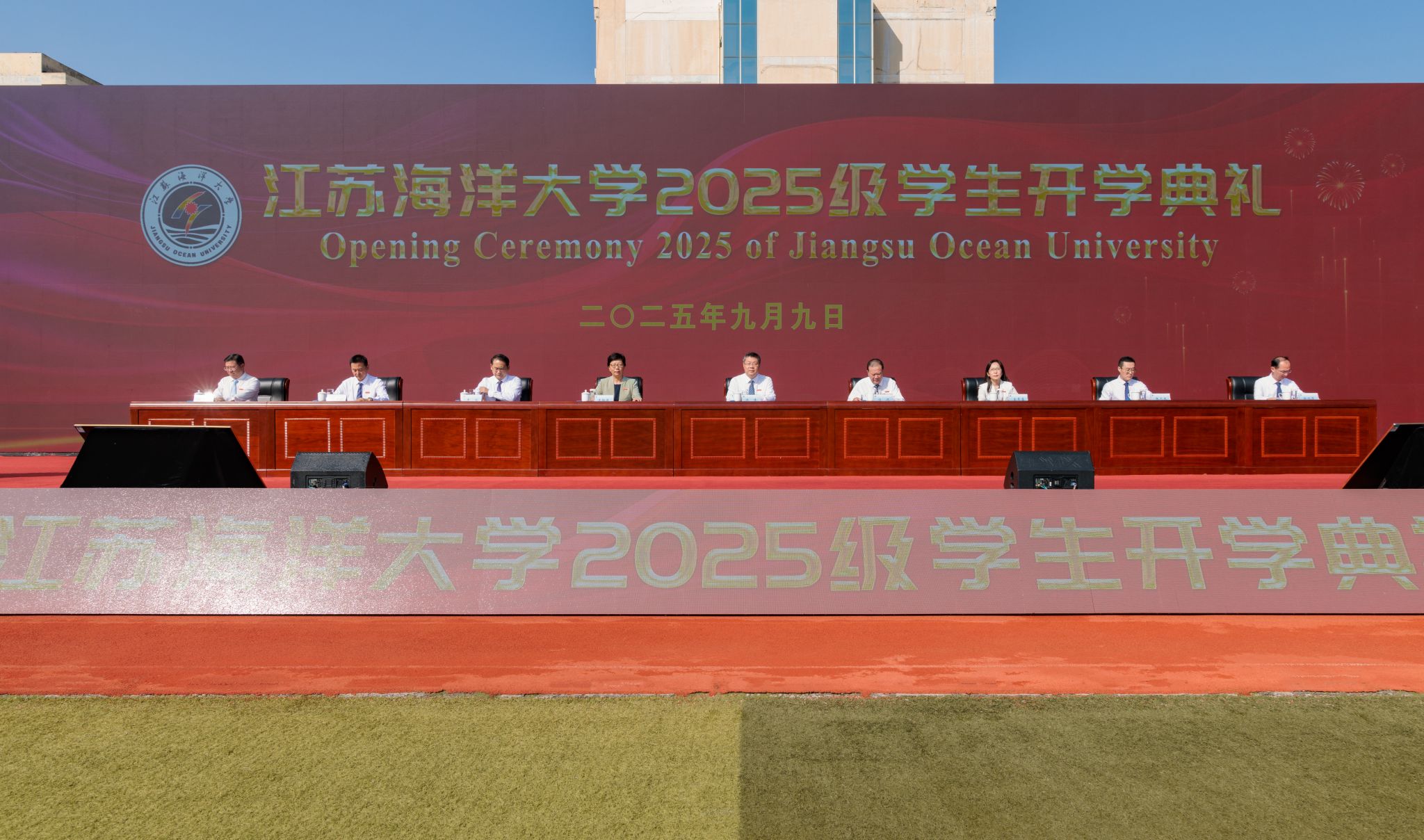 潮起山海万象新,海韵盈门拓锦程。9月9日上午,江苏海洋大学在苍梧校区西运动场举行2025级学生开学典礼。典礼以线上线下相结合的方式进行。校党委书记许峰,校长汤建,校党委副书记李梅英,副校长金芙蓉、申欣、马廷淮、张元良、徐军田,校纪委书记徐双俊出席典礼。典礼由副校长马廷淮主持。