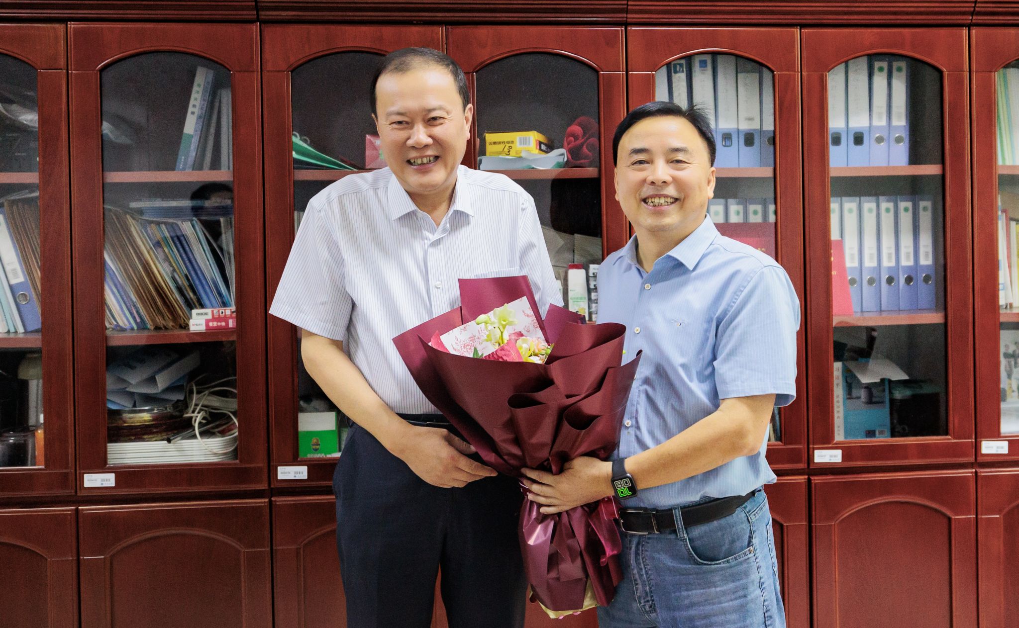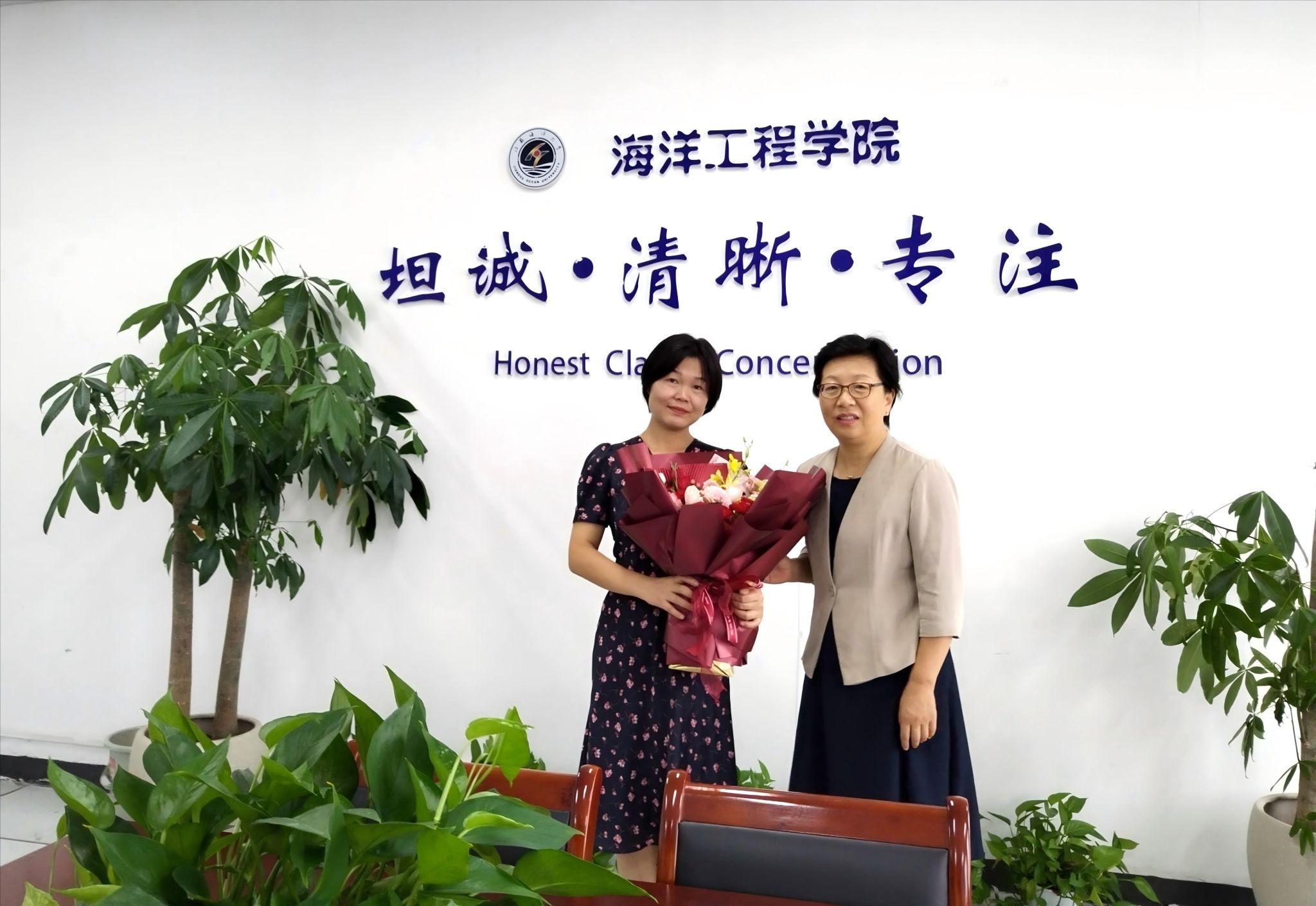 “节日快乐!”在海洋科学与水产学院,许峰为王洪斌教授送上鲜花,感谢他四十年如一日,在教师岗位的倾情奉献。许峰表示,教师是学生成长的引路人,肩负着立德树人的崇高使命,希望广大优秀教师充分发挥“传帮带”作用,把良好的职业素养、务实的工作作风、先进的教学方法倾囊相授,不断提高学校教育教学实效和人才培养质量。许峰勉励大家牢记立德树人根本任务,大力弘扬教育家精神,以学校事业发展为己任,凝心聚力、开拓创新,共同为谱写教育强国建设华章贡献力量。