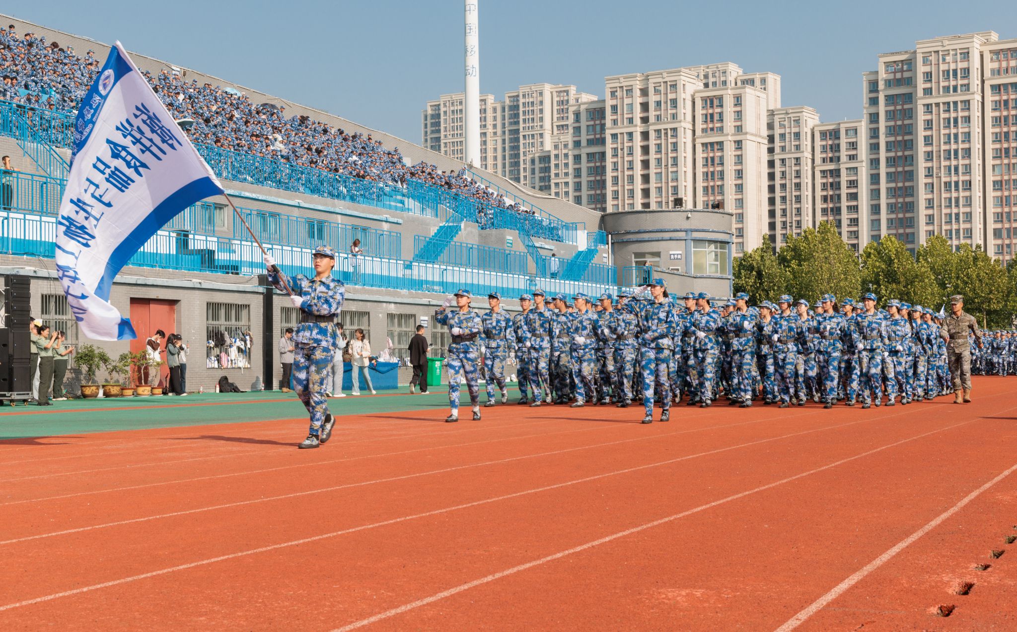 许峰作总结讲话。他向受训新生提出三点期望:一要锤炼不畏艰难、淬炼成钢的底气。把令行禁止的纪律意识、协同攻坚的团队精神、不畏困难的顽强作风带入今后的学习与人生。二要传承自强不息、引领时代的志气。要努力掌握前沿科技,以学习者、创新者的姿态,勇敢面对科技浪潮,用智慧和汗水为实现伟大强国梦想贡献青春力量。三要弘扬“向海图强、矢志报国”的锐气。既要塑造“自强不息”的意志品格,脚踏实地、埋头苦学;也要永葆“经略海洋”的理想情怀,主动关心海洋、认识海洋、热爱海洋,努力成为建设海洋强国的中坚力量。