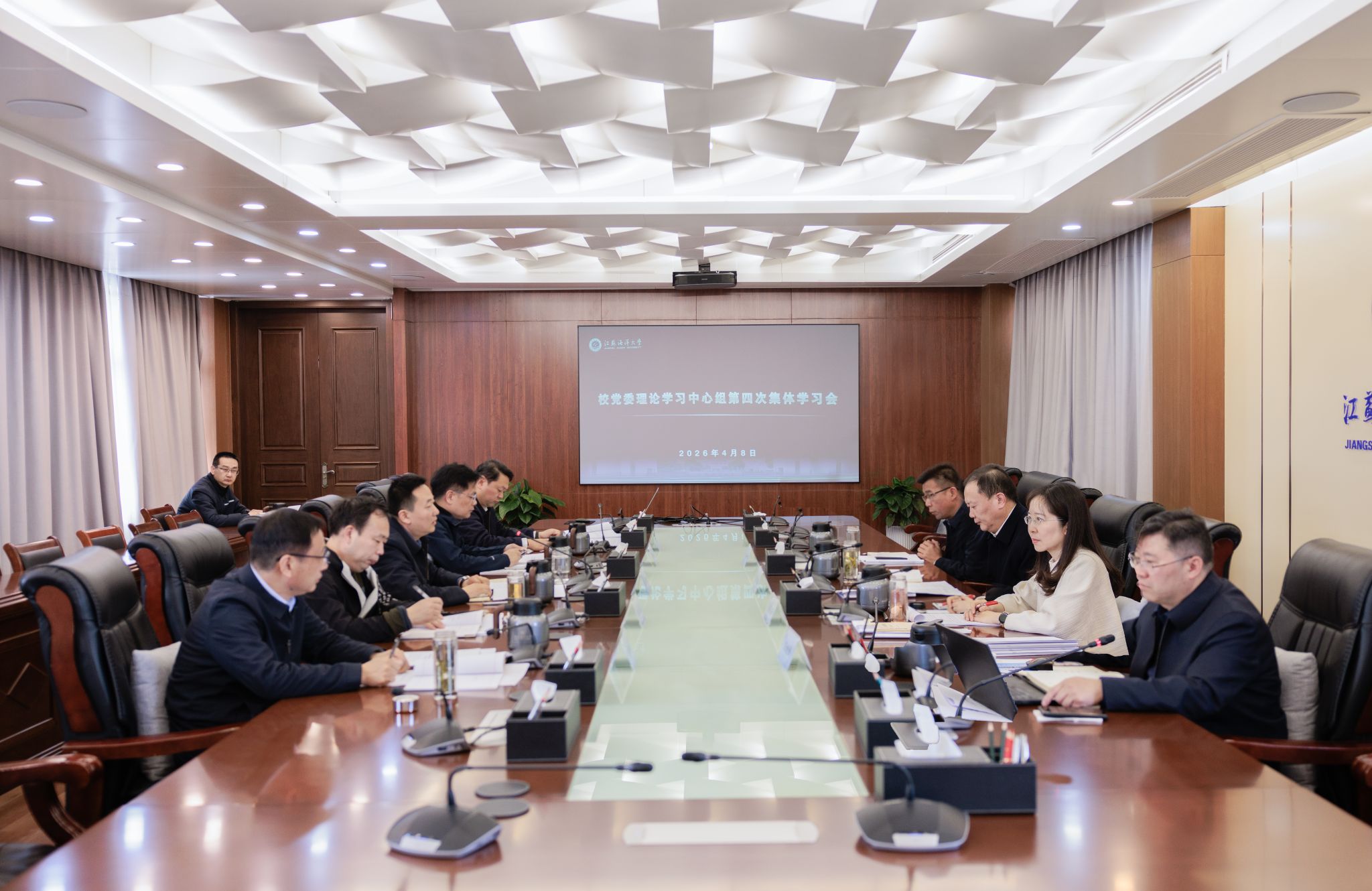 4月8日上午,校党委理论学习中心组在行政楼五楼会议室举行2026年第四次集体学习。党委书记、校长汤建主持学习并讲话。