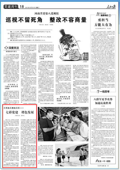 面对村居发展遭遇瓶颈,迫切需要注入新活力的现实,连云区在立足区情、深入调研基础上,探索村居发展“七彩连云”计划,将色彩文化融入村居发展和基层组织建设中,打造出“红色先锋、绿色志愿、蓝色共建、橙色互助、青色创业、金色阳光、黄色暖心”7个党建项目。
