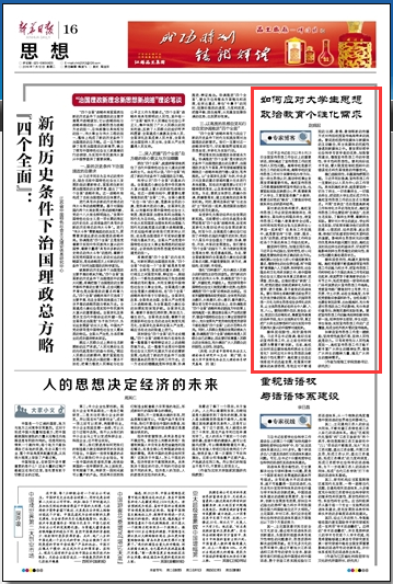 要体现创新性,用好宣传阵地。习近平总书记强调,做好当前的宣传思想工作,比之前任何时候都更为需要不断创新。当前,高校应如何适应媒体格局和舆论生态的变化?如何应对大学生思想政治教育的个性化需求?高校要主动适应信息技术的迅猛发展,克服面对新媒体的本领恐慌,有效应对不断涌现的QQ群、微博、微信等新的传播方式对传统校园宣传格局带来的挑战。要促进校园传统媒体与新媒体的互动融合,将主流媒体的权威性渗透到新媒体之中。要发挥好哲学社会科学专家学者的优势,加强智库建设,增强宣传思想工作的学理性、学术性和思想性。要利用好技术手段,最大限度控制校园网中的错误观点和负面信息的传播空间。