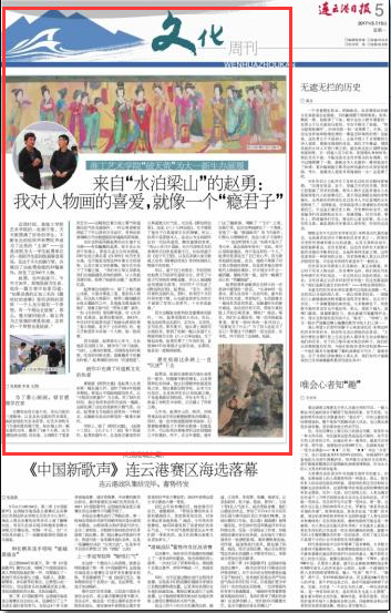 也许这种画风跟赵勇的出生地不无关联——有些腼腆的赵勇,家乡在山东济宁的梁山,那是孔孟文化的发源地,同时也是古典名著《水浒传》的历史发生地。也可能是受到这种齐鲁文化的浸染,以及古典文学的熏陶,他与艺术结下了不解之缘。“我的伯父和父亲都是我们当地搞建筑彩饰的画师,从小我就耳濡目染,获得了绘画的启蒙。”赵勇回忆道。