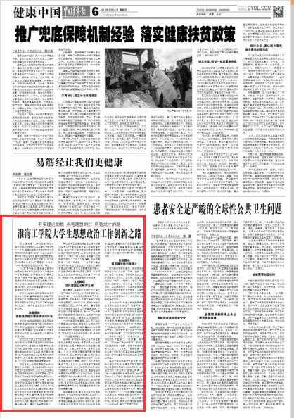 近年来,淮海工学院遵循学生思想政治工作规律,遵循学生成长规律,不断改进老办法、探索新路径,把解决学生的思想问题和学习就业等实际问题结合起来,走出了一条大学生思想政治工作创新之路。