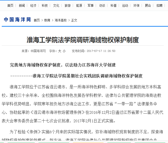 ——淮海工学院法学院暑期社会实践团队调研海域物权保护制度