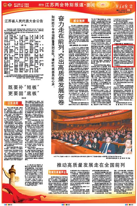凝心聚力、共谋发展,省两会明确了今后五年特别是今年我省经济社会发展的奋斗目标和主要任务。与会代表委员纷纷表示,新时代新目标催人奋进,要按照走在前列的要求,深入学习贯彻党的十九大精神,切实以习近平总书记对江苏工作的重要指示为指南,坚定信心、锐意进取,真抓实干、埋头苦干,接续推进“两聚一高”新实践,加快建设“强富美高”新江苏,努力交出高质量发展的时代答卷。