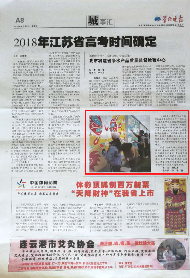 据悉,今年是淮工创建江苏海洋大学的冲刺年。为了突出校园内海洋特色文化,表达师生对江苏海洋大学创建成功的期待,淮工艺术学院从3月底开始筹划,准备以墙体彩绘的形式,为学校创建江苏海洋大学助力。