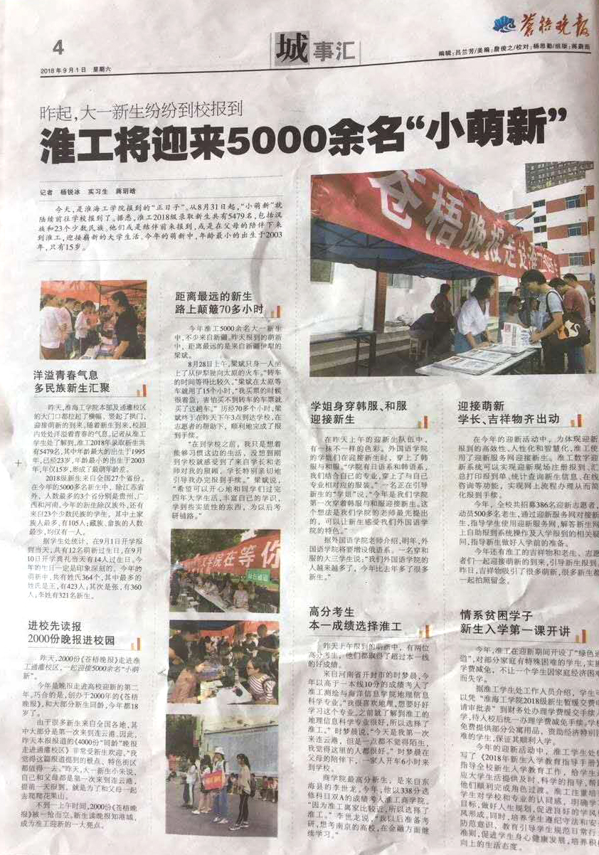 昨天,2000份《苍梧晚报》走进淮工通灌校区,一起迎接5000余名“小萌新”。
