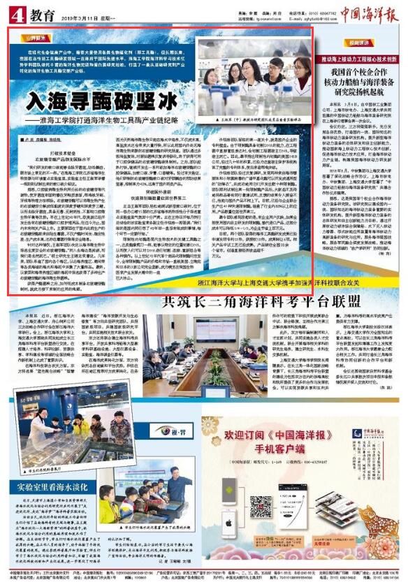 在现代生命健康产业中,需要大量使用各类生物催化剂(即工具酶)。但长期以来,我国在高性能工具酶研发领域一直落后于国际先进水平。淮海工学院海洋科学与技术优势学科团队依托丰富的海洋生物资源和蛋白质研究经验,打造了一条从基础研究到产业转化的海洋生物工具酶完整产业链。