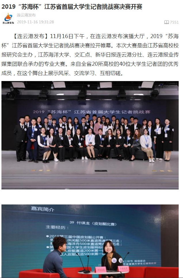 为了进一步发现和培养大学生新闻人才,激发新闻理想,提升综合素质,今年10月,由江苏省高校校报研究会主办,江苏海洋大学、东南大学、南京农业大学等八所高校共同发起,筹备全省首届大学生记者挑战赛,让更多怀揣记者梦的大学生在这个舞台上展示才华,相互切磋,促进交流,共同进步。