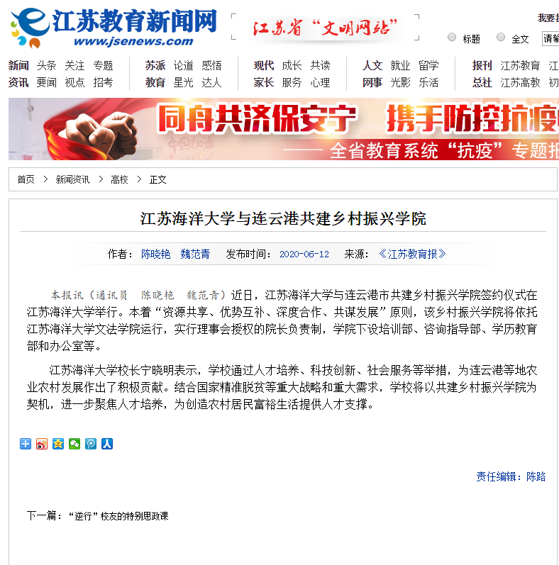 江苏教育报2020年6月12日 江苏教育新闻网2020年6月12日