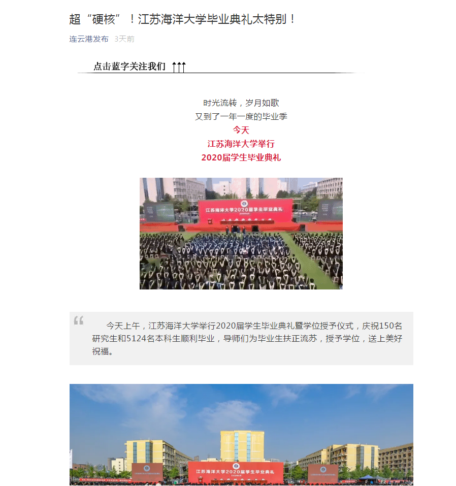今天江苏海洋大学举行2020届学生毕业典礼。