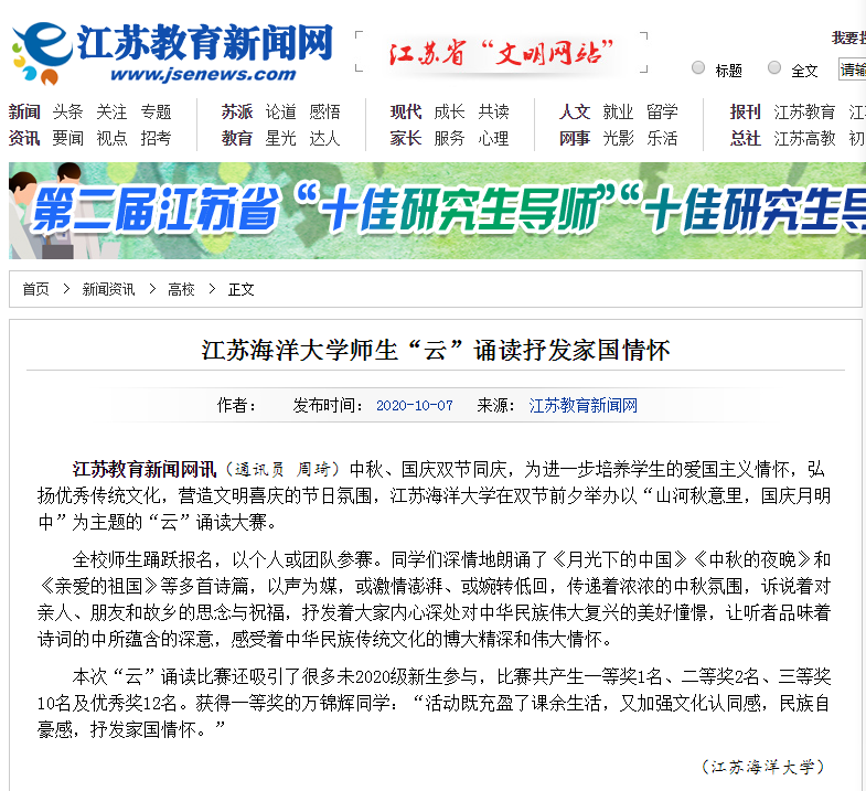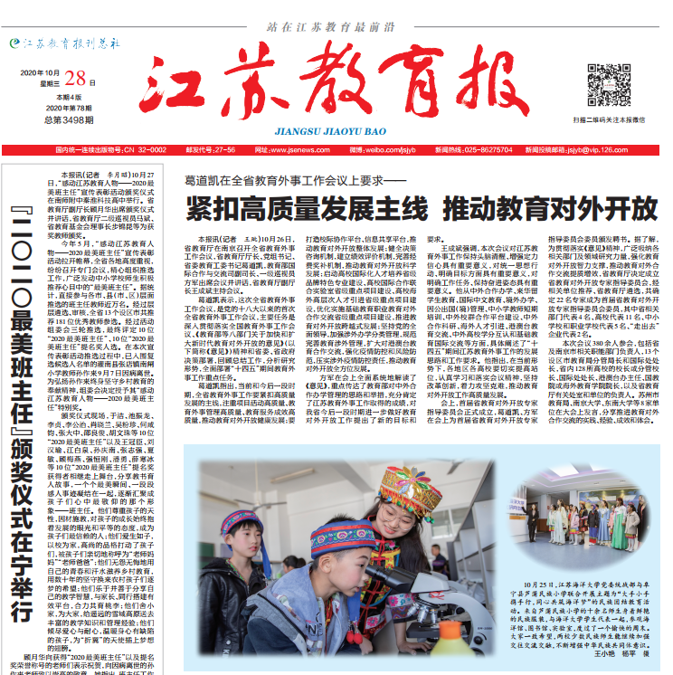 江苏教育新闻网 江苏教育报 1版 2020年10月28日