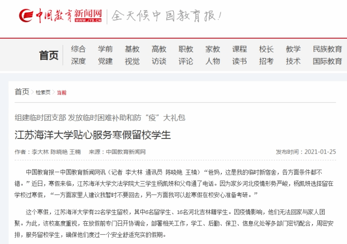 中国教育新闻网 2021年1月25日