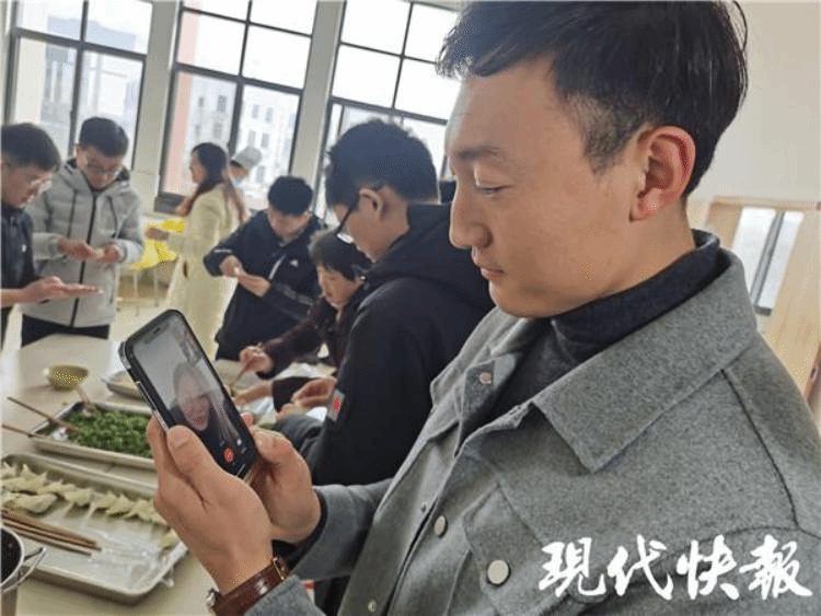 分享结束后,留校老师们又来到食堂,一起学包饺子、馄饨。" 奶奶、小姑,我在常州好着呢,你看我们在包饺子呢,每天安排满满的,大家一起唱歌,交流教学经验,一起打球,都好着呢。" 李振飞跟家人视频通话时说道。
