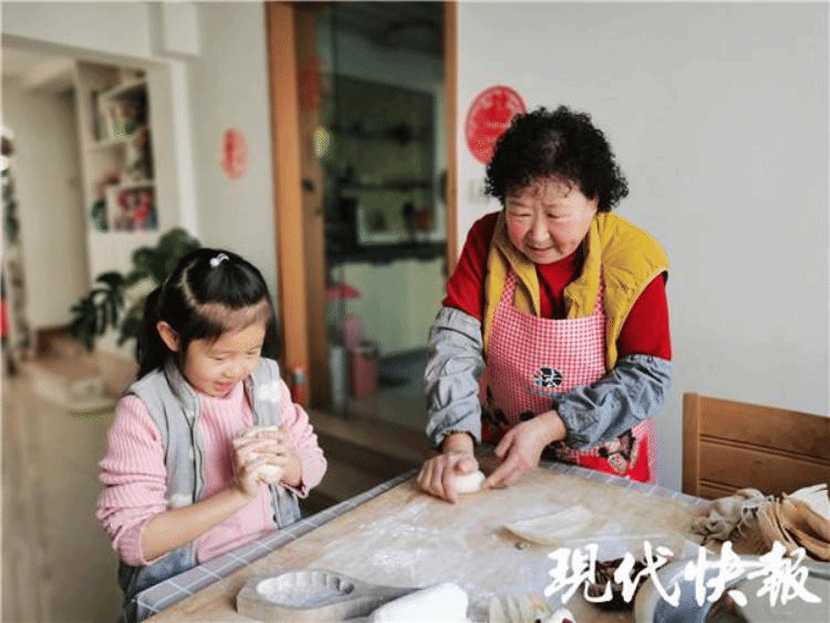 68 岁的杨凤华端出一大早就发好的面,拿来从老家带来的模具、玉米叶和专用饽饽粉,开始揉面。" 每年过年老家都要做山东大饽饽,今年我们不回去了,我就做一些给南京的邻居尝尝。"