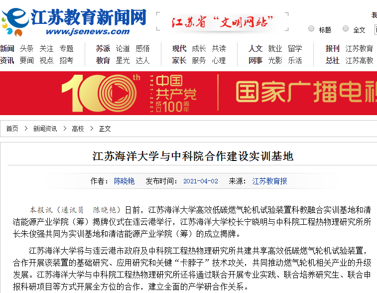 江苏海洋大学将与连云港市政府及中科院工程热物理研究所共建共享高效低碳燃气轮机试验装置,合作开展该装置的基础研究、应用研究和关键“卡脖子”技术攻关,共同推动燃气轮机相关产业的升级发展。江苏海洋大学与中科院工程热物理研究所还将通过联合开展专业实践、联合培养研究生、联合申报科研项目等方式开展全方位的合作,建立全面的产学研合作关系。(通讯员:陈晓艳)