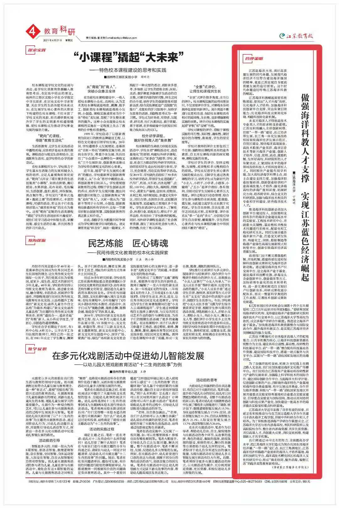 《江苏省国民经济和社会发展第十四个五年规划和二〇三五年远景目标纲要》提出,“要培育国家级海洋研究机构,支持建设海洋产业创新研究院和海洋技术产权交易平台,以江苏海洋大学等高校为依托,成立涉海产学研合作联盟。推进设立海洋产业子基金。”加快推进海洋科教资源整合与国际交流合作、提升海洋科教实力,是实现江苏海洋经济突围崛起的强力支撑。