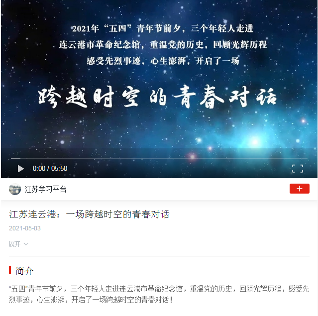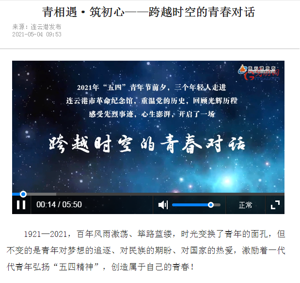 2021年是中国共产党成立100周年,当下党史学习教育正在如火如荼的开展中,连云港报业传媒集团、市革命纪念馆联合团市委、市妇联、江苏海洋大学策划推出“青相遇·筑初心——跨越时空的青春对话”微视频。