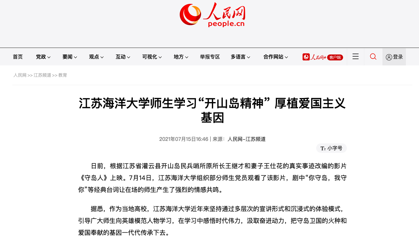 据悉,作为当地高校,江苏海洋大学近年来坚持通过多层次的宣讲形式和沉浸式的体验模式,引导广大师生向英雄模范人物学习,在学习中感悟时代伟力,汲取奋进动力,把守岛卫国的火种和爱国奉献的基因一代代传承下去。