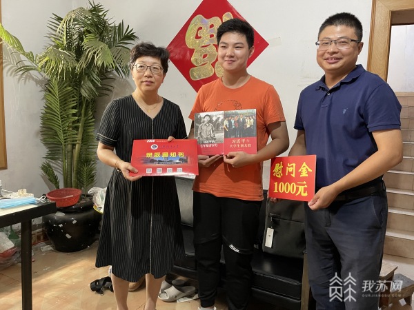“这是学校送出的第一封录取通知书,里面有入学指南、校长寄语等。你放心,学校不会让学生因为经济问题而上不了学。”江苏海洋大学副校长李梅英将录取通知书送到江泉余手上,并送上了1000元慰问金、生活学习用品和几本书籍,鼓励小江积极融入大学生活,全方位锻炼综合素质。