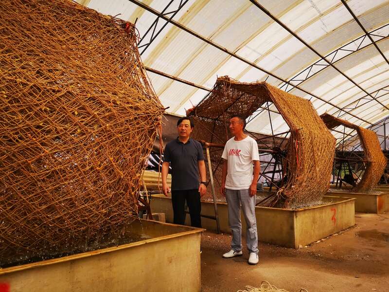 秦建军经营赣榆一家最大的育苗加工企业,8月12日,李信书来到赣榆柘汪,帮助秦建军检查水质和苗种发育情况。