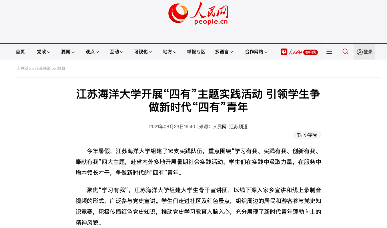今年暑假,江苏海洋大学组建了16支实践队伍,重点围绕“学习有我、实践有我、创新有我、奉献有我”四大主题,赴省内外多地开展暑期社会实践活动。学生们在实践中汲取力量,在服务中增本领长才干,争做新时代的“四有”青年。
