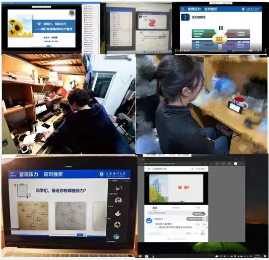 与此同时,心理健康教育中心开通“云”课堂,为师生提供线上心理教学辅导,开设“‘疫’路同行,向阳花开——大学生如何做好压力管理”和“大学生疫情期间心理调适”等专题讲座,内容涉及疫情中的心理成长、情绪和压力管理、人际关系提升等。“云”课堂采用直播的形式实现师生实时互动,有针对性地满足不同学生群体的心理健康需要。讲座过后学生们纷纷表示获益匪浅,预科部文预0211班孙永慧说:“听了讲座后,了解到许多心理健康知识,学会了调节情绪的方法,尝试用自我暗示、适度宣泄和放松训练等方法来缓解压力,收到了良好的效果。”