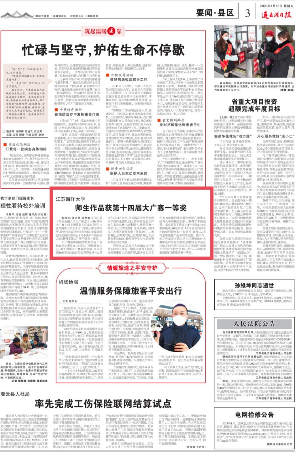 连云港日报 2023年1月13日 第三版