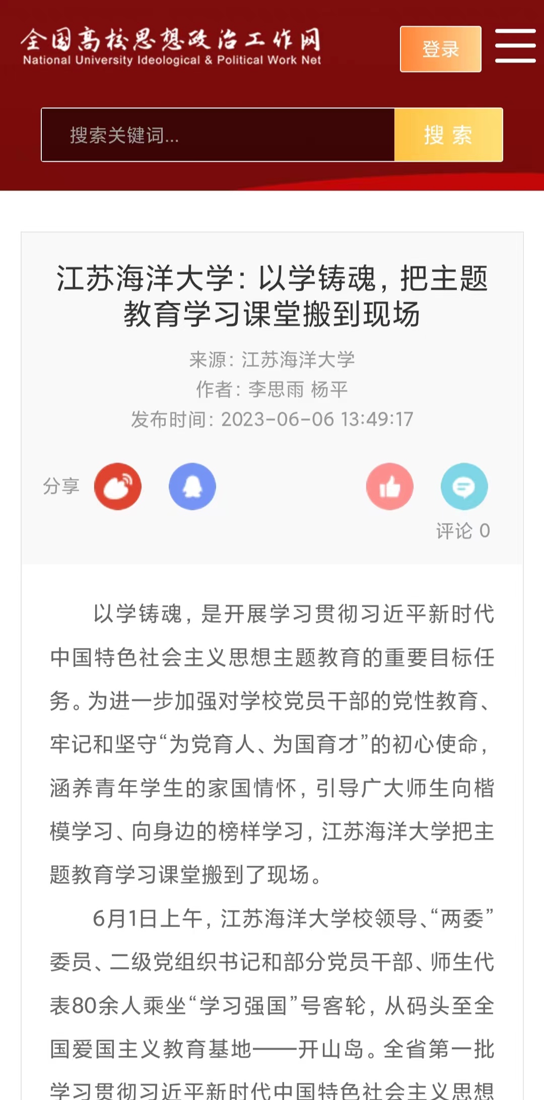 全国高校思想政治工作网 2023年6月7日