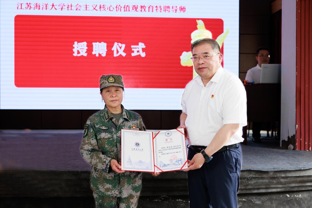 随后,党委书记王自力为时代楷模王仕花颁授“江苏海洋大学社会主义核心价值观教育特聘导师”聘书。