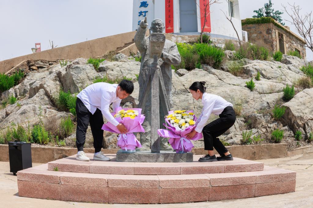 英雄虽已去,但精神永存。学生党员代表为王继才铜像献上鲜花,静静肃立,深深鞠躬,表达对王继才烈士的敬意,以此缅怀楷模,传承守岛精神。