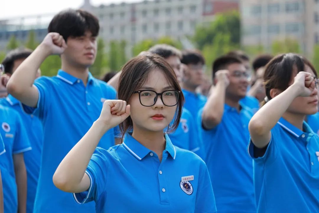 (校学生会执行主席孔令洲带领新生进行入学宣誓)
