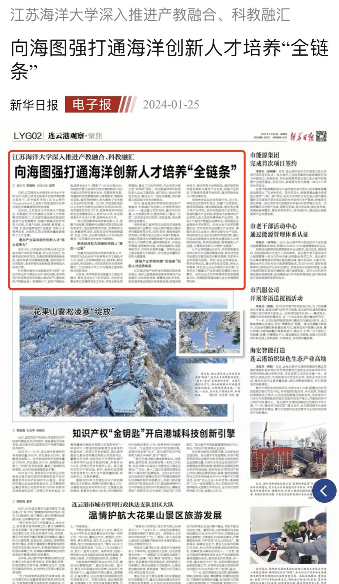 近年来,江苏海洋大学将深化产教融合、科教融汇作为构建拔尖创新人才培养模式的突破口,主动面向建设海洋强国和海洋产业发展需求,构建产教融合的协同育人机制,打通产业链、创新链、教育链、人才链,打造四链贯通的“全链条”创新人才培养体系,为服务江苏沿海高质量发展提供了人才支撑。