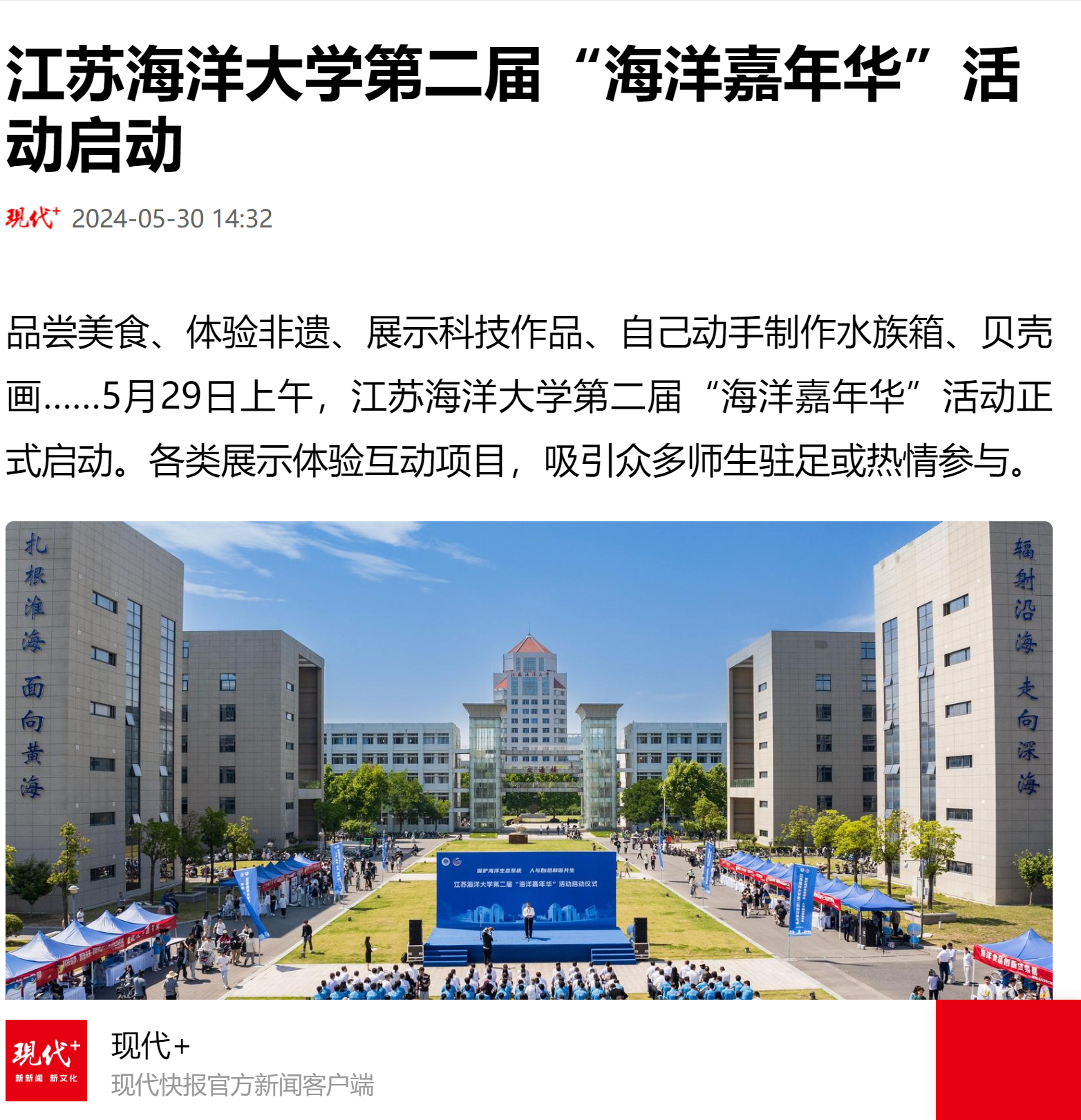 品尝美食、体验非遗、展示科技作品、自己动手制作水族箱、贝壳画……5月29日上午,江苏海洋大学第二届“海洋嘉年华”活动正式启动。各类展示体验互动项目,吸引众多师生驻足或热情参与。