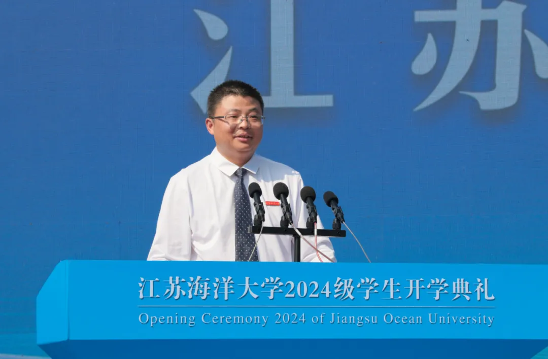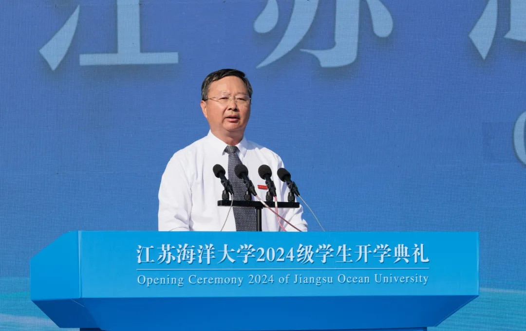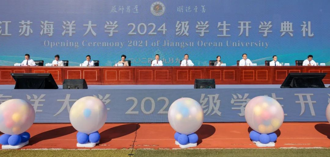 千帆竞渡潮头立,青春逐梦万里航。9月9日上午,江苏海洋大学2024级学生开学典礼在苍梧校区西操场举行,典礼以线上线下相结合的方式举行。该校党委书记许峰,校长宁晓明,党委副书记李梅英,副校长金芙蓉、郑利军、申欣、马廷淮、张元良、徐军田出席典礼。典礼由副校长朱国军主持。