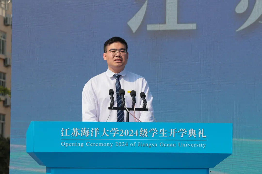 艺术设计学院本科生徐璐媛、机械工程学院硕士研究生钮硕硕分别作为老生、新生代表发言。他们表示,要慎始而行、勤学为本,知行合一、实践为要,提升修养、全才并蓄,以昂扬的斗志和饱满的热情,在投身海洋强国建设中谱写青春之歌。全场师生齐唱江苏海洋大学校歌《蔚蓝的信仰》。婉转悠扬的校歌旋律回荡于校园上空,学子们心怀蔚蓝信仰,于江海大扬帆起航。